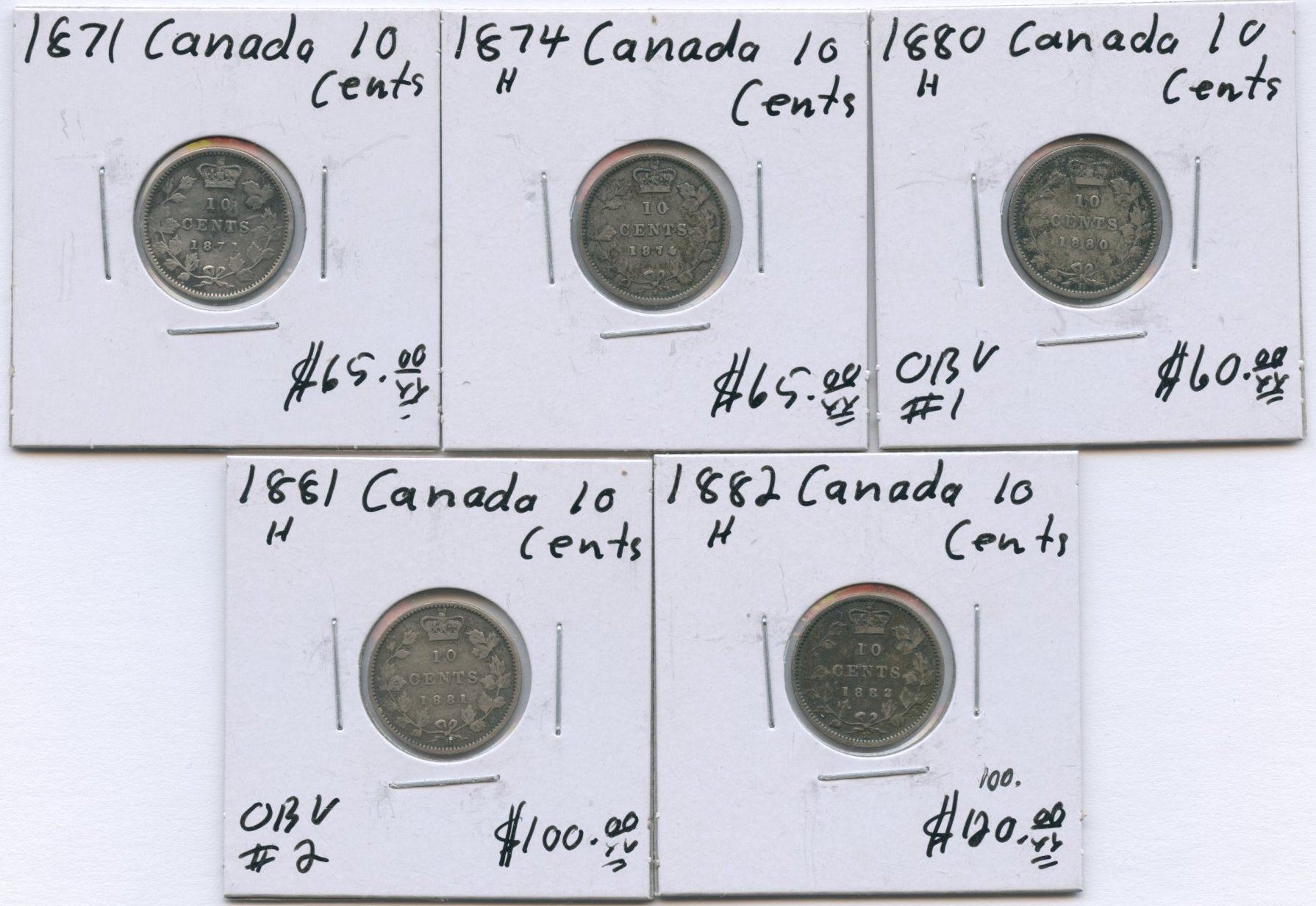 Includes: 1871, 1874H, 1880H, 1881H, 1882H. 5 pcs.