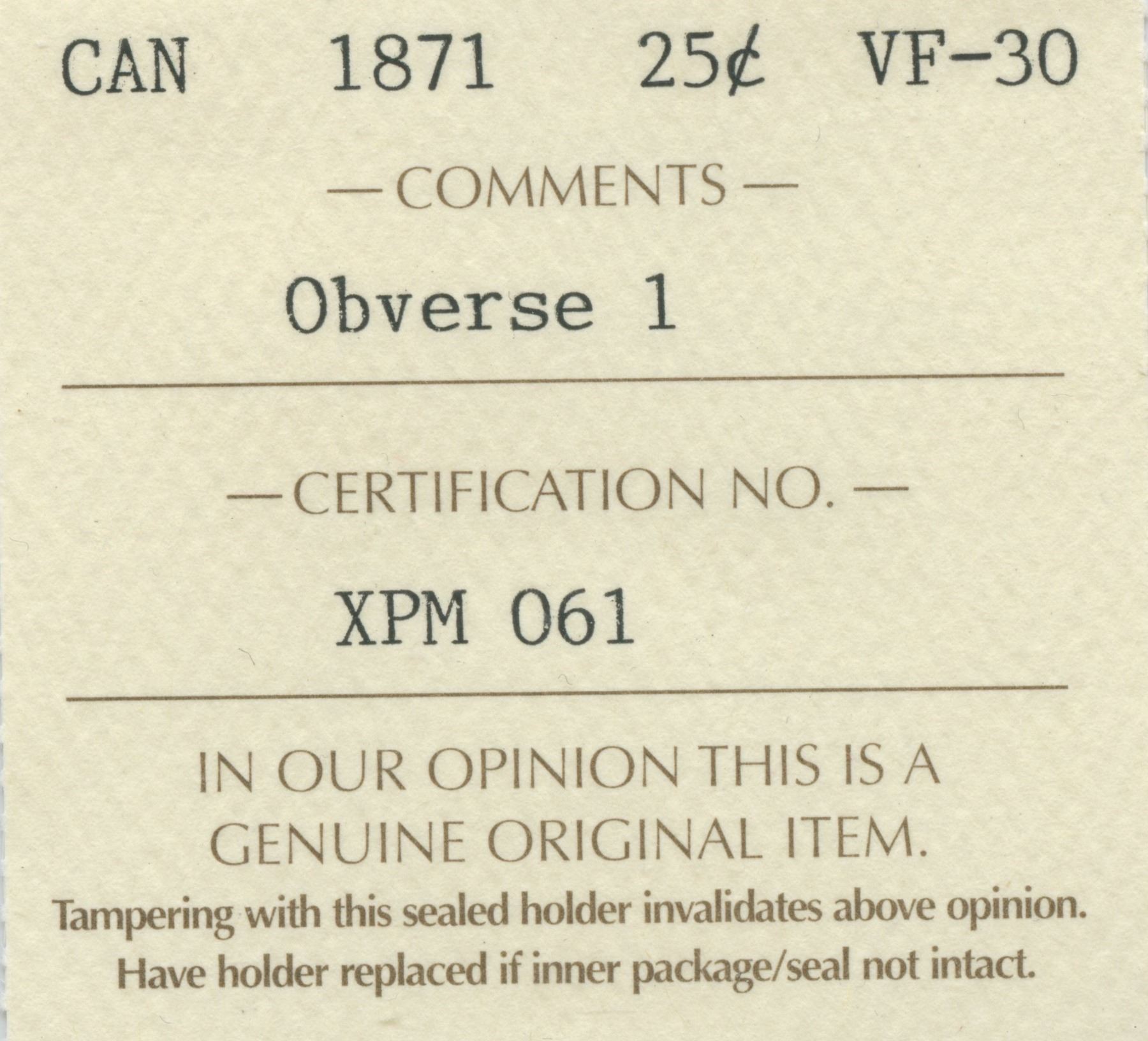 ICCS VF-30, Obverse 1.