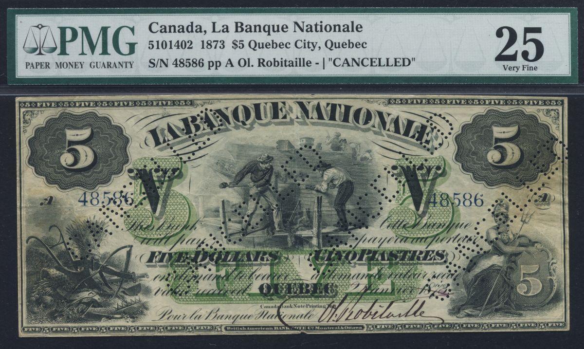 CH 510-14-02. PMG Graded VFG25. Gorgeous Condition. Note has been punch cancelled (all recorded are). 1873 notes are seldom offered. S/N 48586/A