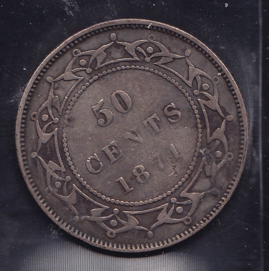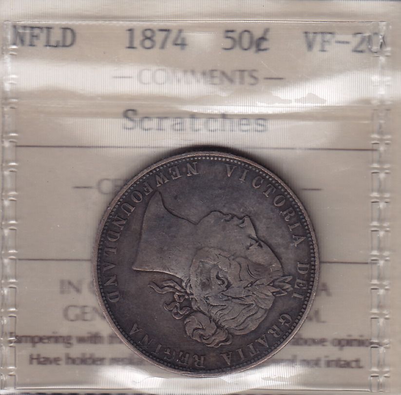 1874 Newfoundland Fifty Cent - ICCS VF-20 scratches.