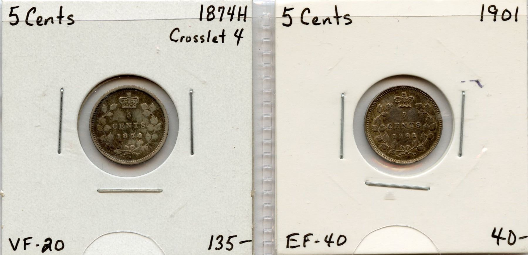 1874H Crosslet 4, VF-20 || 1901 EF-40. 2 Pcs.