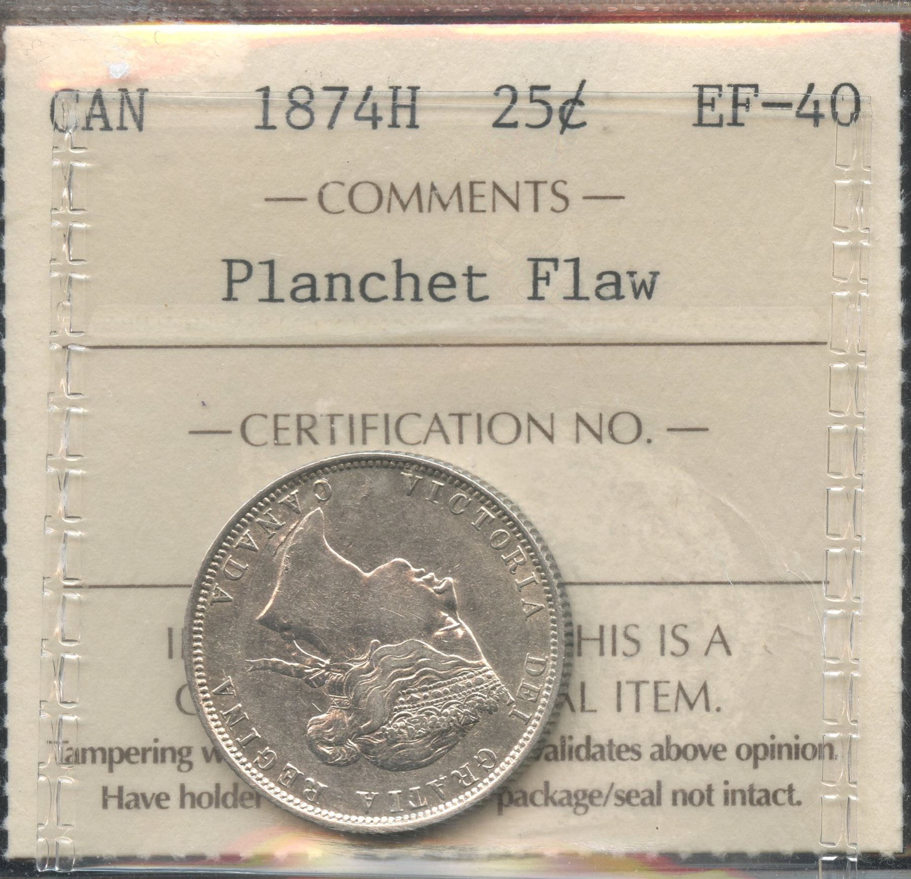 ICCS EF-40. Planchet Flaw.