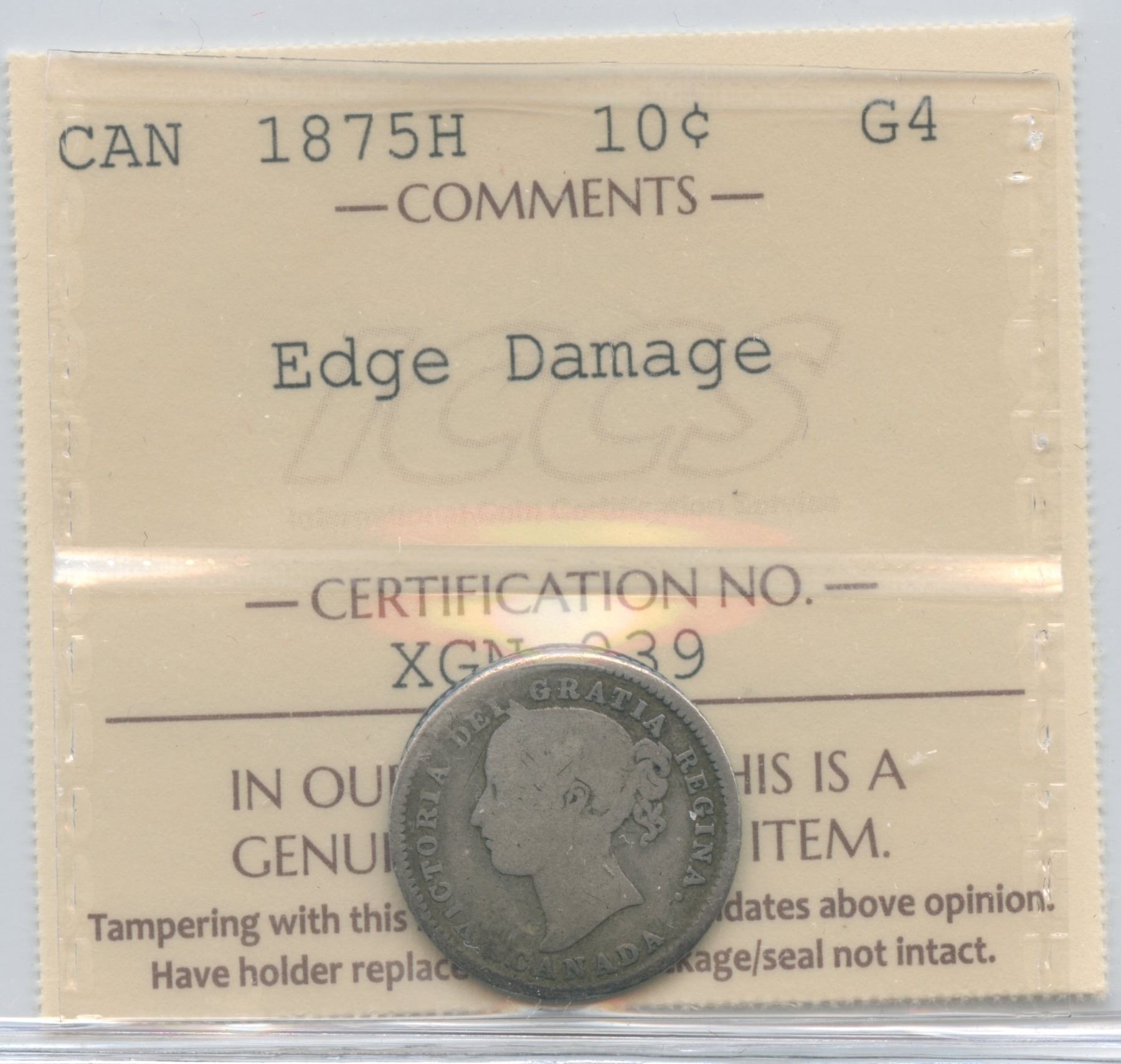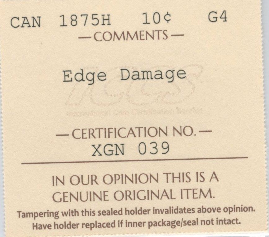 ICCS G4. Edge Damage. Rim ding seen from reverse of the coin.