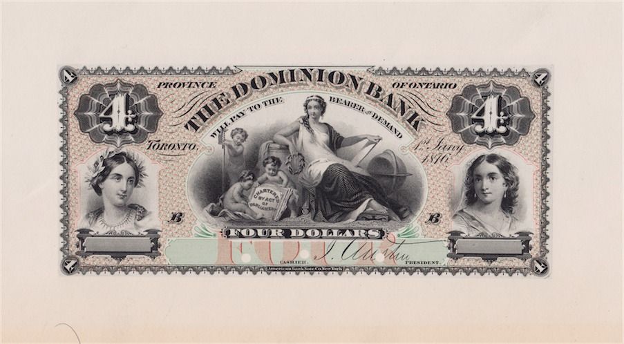 1876 Dominion Bank $4 Proof. CH 220-12-02P, Uncirculated.