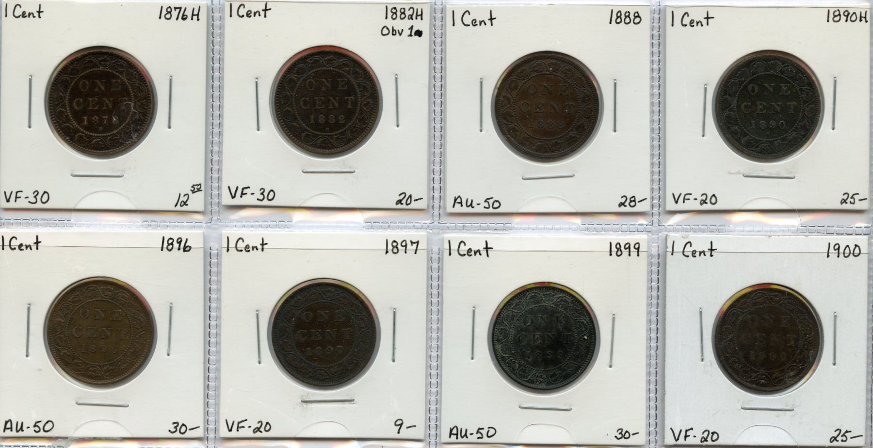 1876H VF-30 || 1882H Obverse 1, VF-30 || 1888 AU-50 || 1890H VF-20 || 1896 AU-50 || 1897 VF-20 || 1899 AU-50 || 1900 VF-20. 8 Pcs.