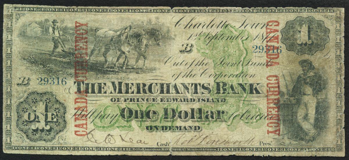 CH 470-10-04-02a. Canada Currency Overprint. VG Condition with foxing on edges. Very rare with only 6 recorded of which two are held in institutions. S/N 29316/B. *