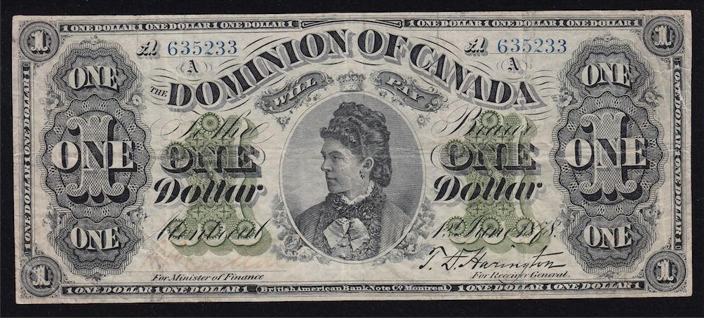 1878 Dominion of Canada $1 - CH DC-8ei Payable at Montreal. VF. S/N:A635233/A.