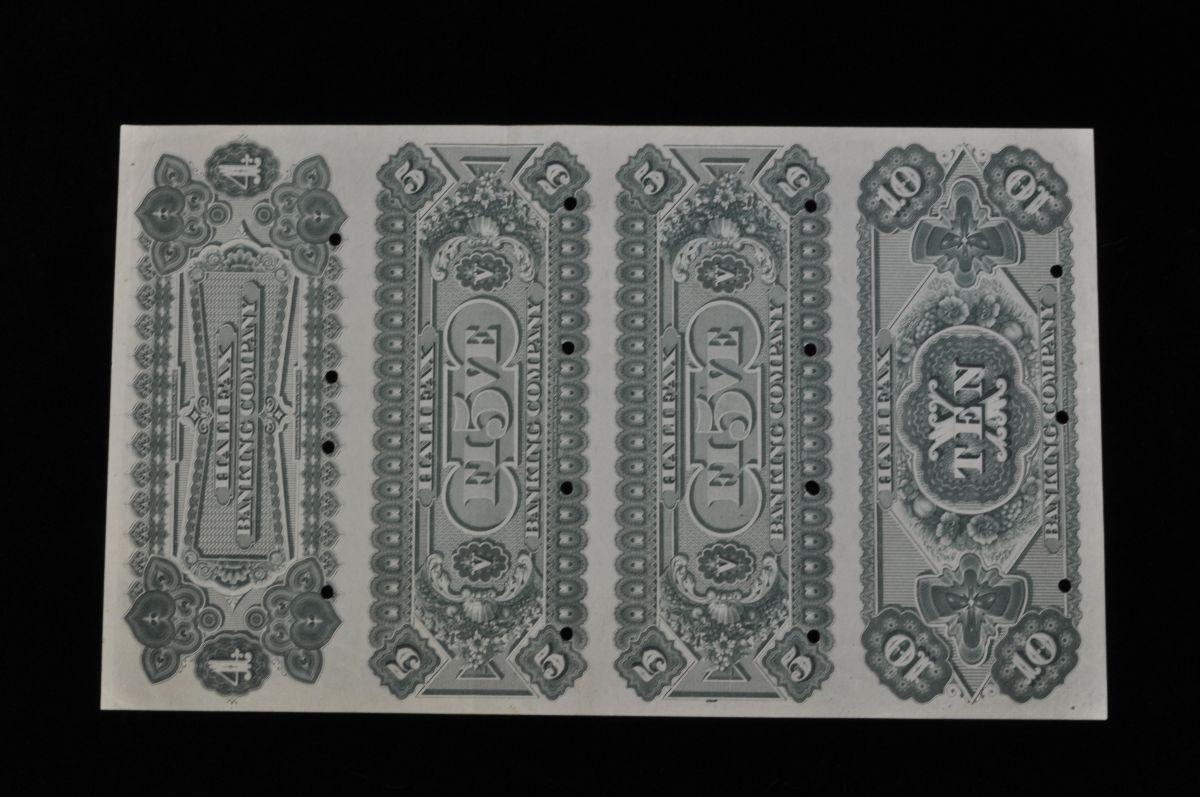 CH 335-16-04S, 08S (2), 12S Wonderful coloured specimen sheet of 4, a purple rubber stamp impression on the top note. A few light folds, one pin hole at top left, other minor imperfections, overall a beautiful sheet". AU/UNC condition. Unique, an incredible opportunity to own such a rarity