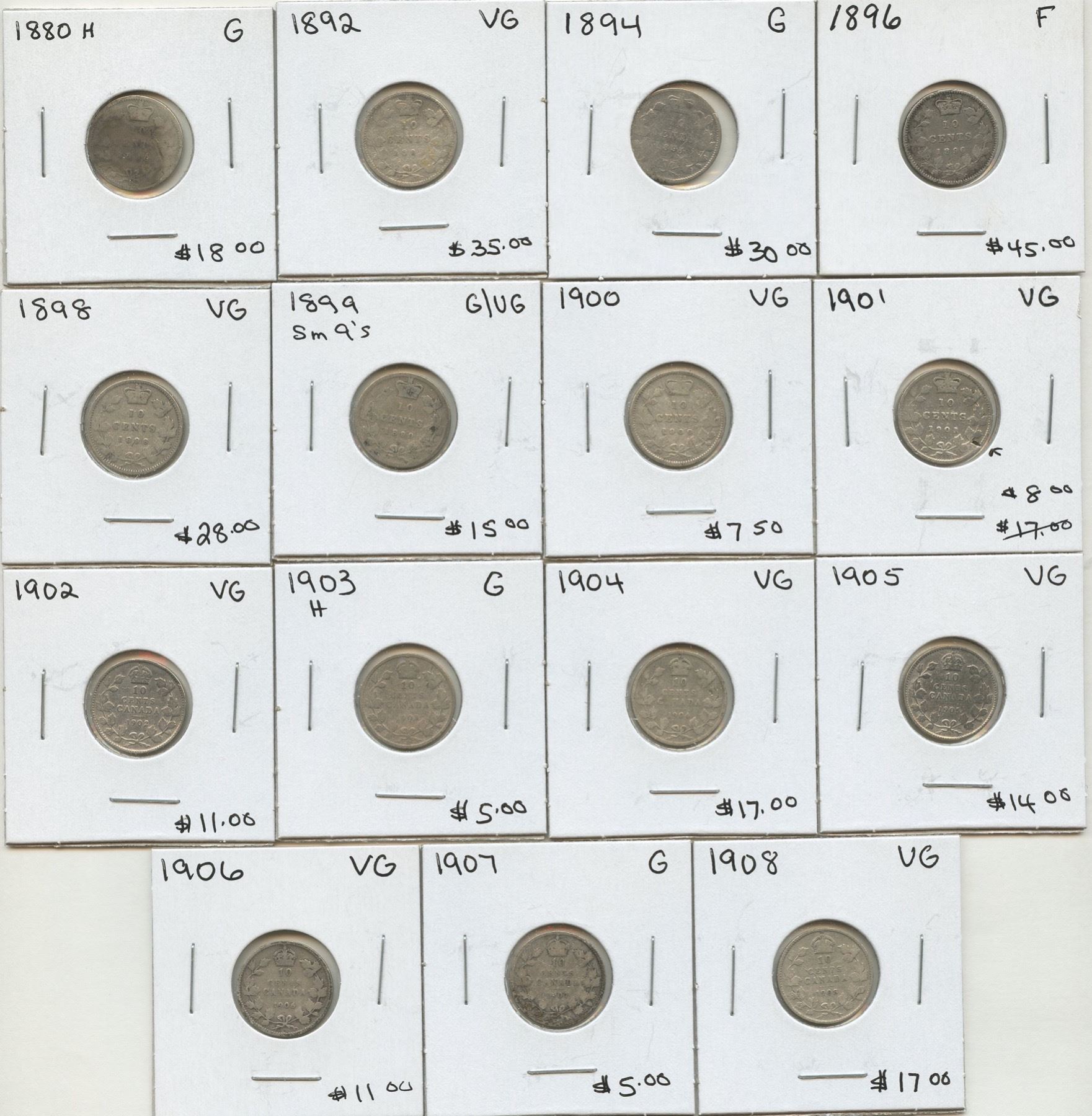 1880H - 1914 Ten Cents - Lot of 21