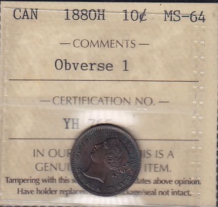 1880H Ten Cent - Obverse 1, ICCS MS-64.