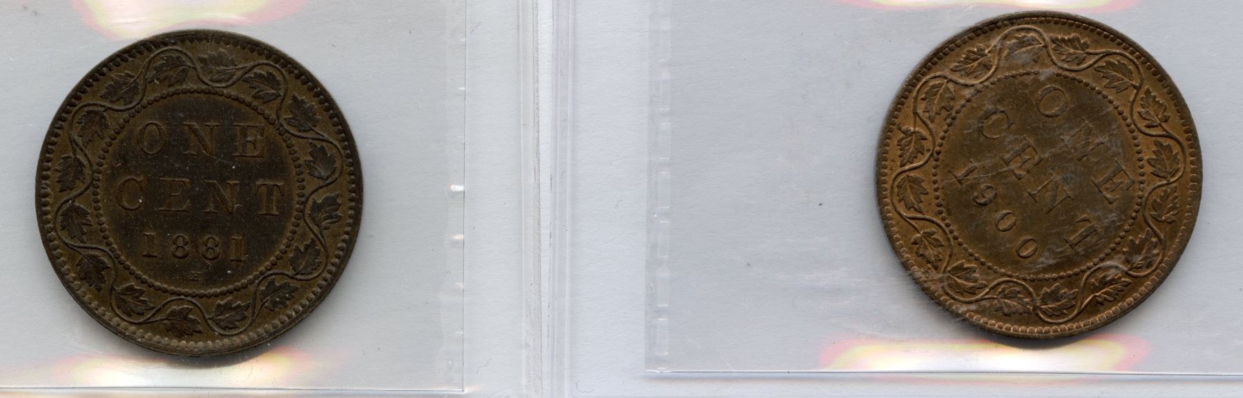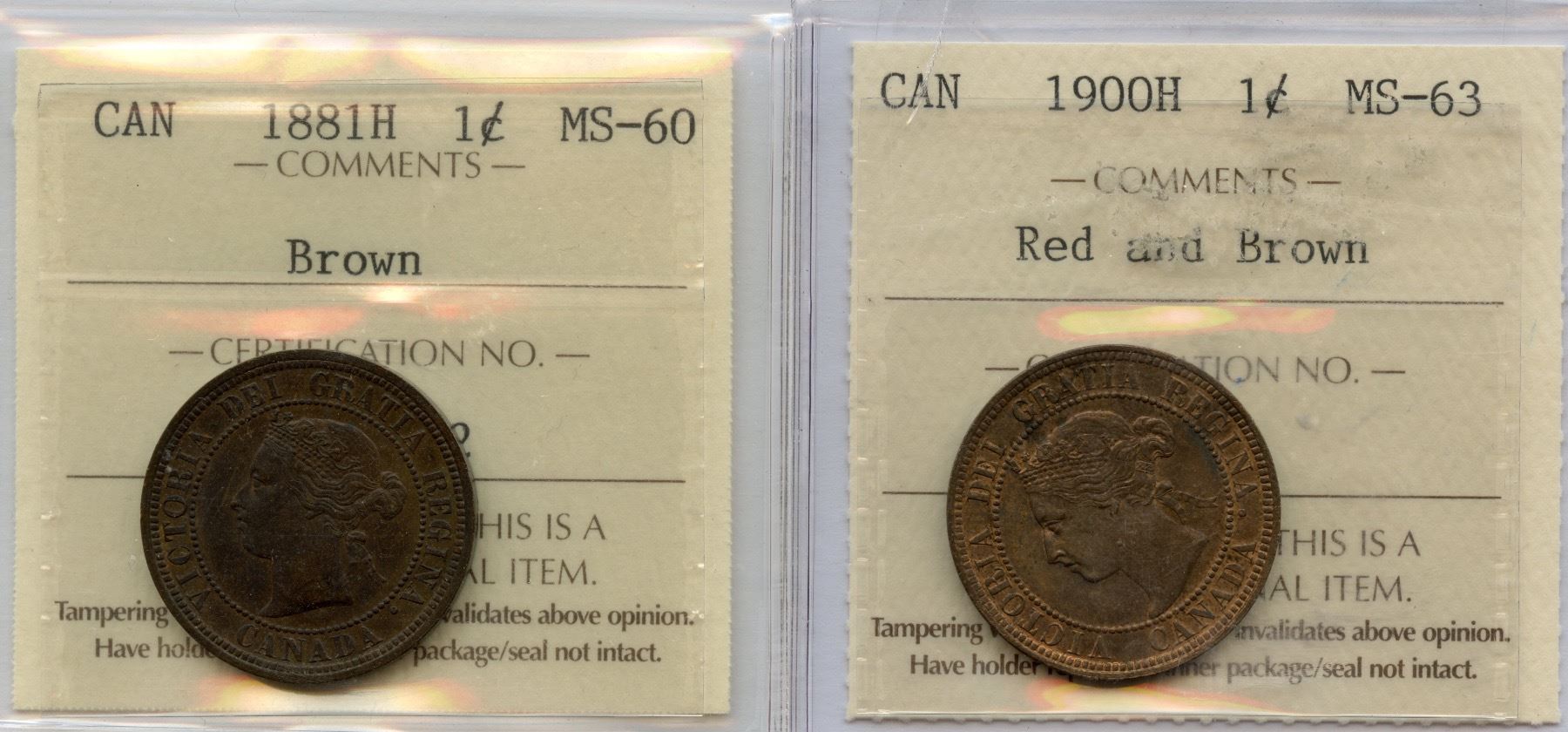 Includes: 1881H MS-60, Brown. 1900H MS-63, Red and Brown (detached certificate). 2 pcs.