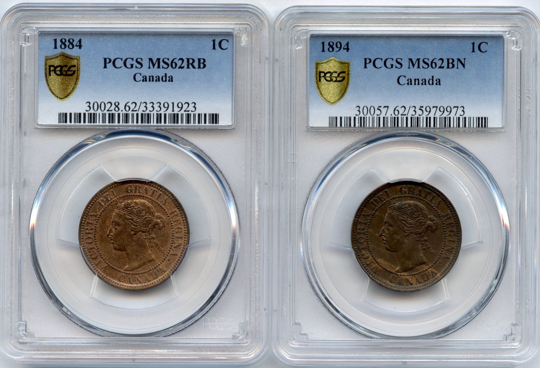 Both graded by PCGS MS62, RB and Brown respectively. 2 pcs.