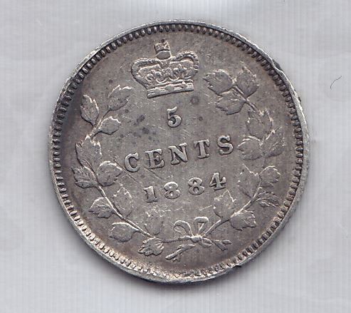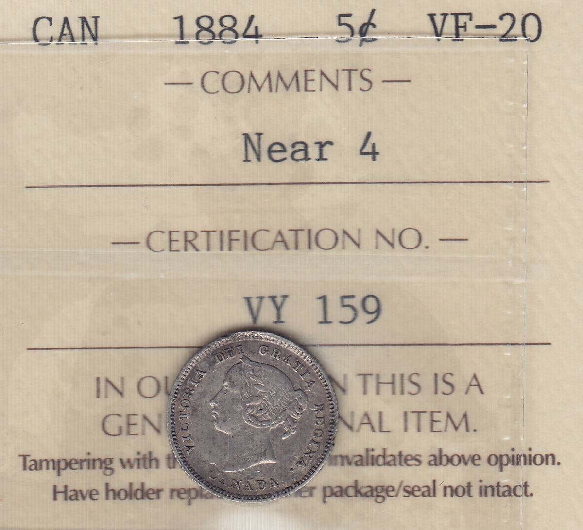 1884 Five Cents - ICCS VF-20. Near 4. Gauge and bent not noted, viewing is recommended, no return.