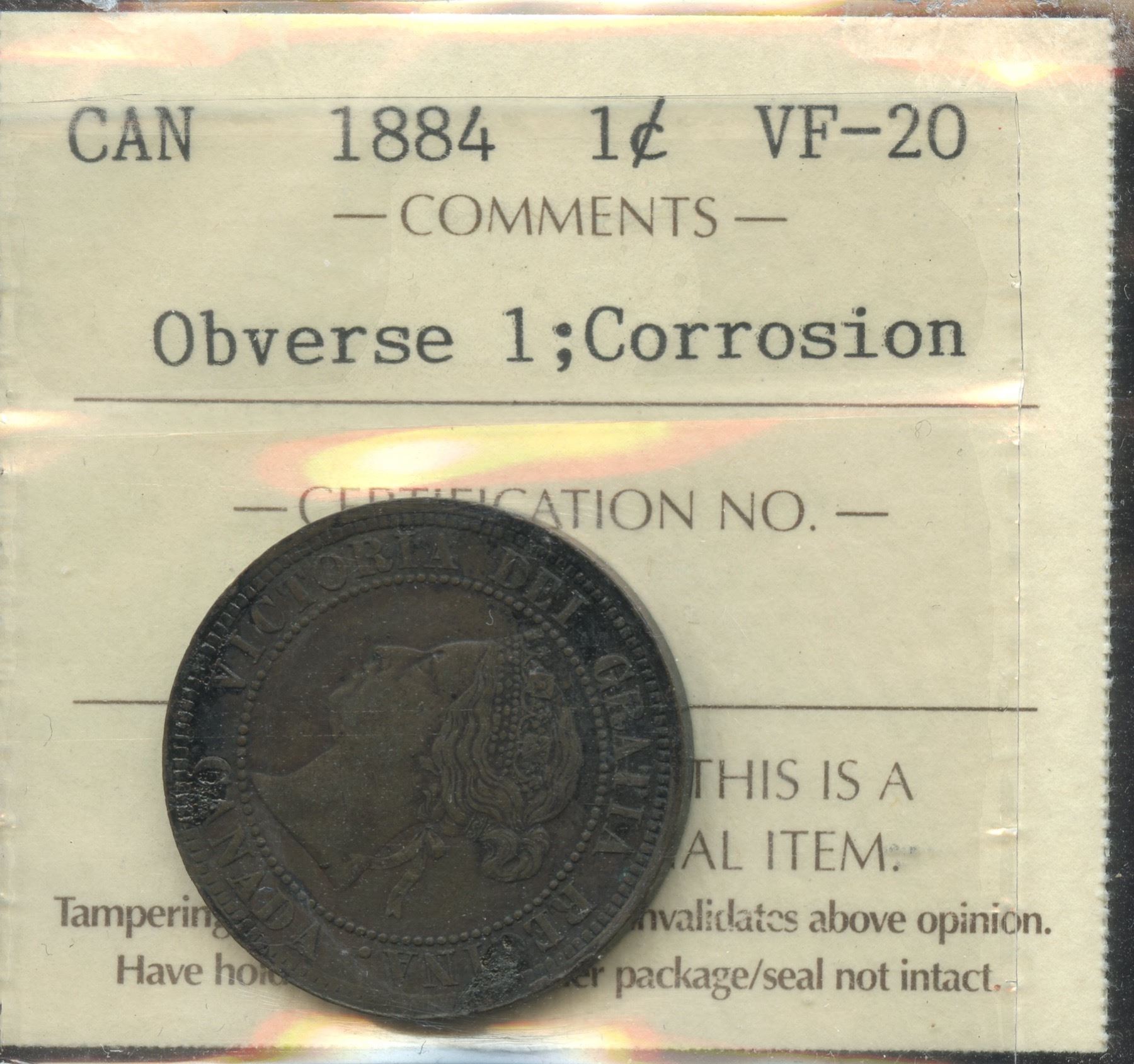 ICCS VF-20. Obverse #1; Corrosion.