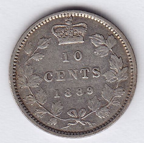 1889 Ten Cent Key Date, Fine.