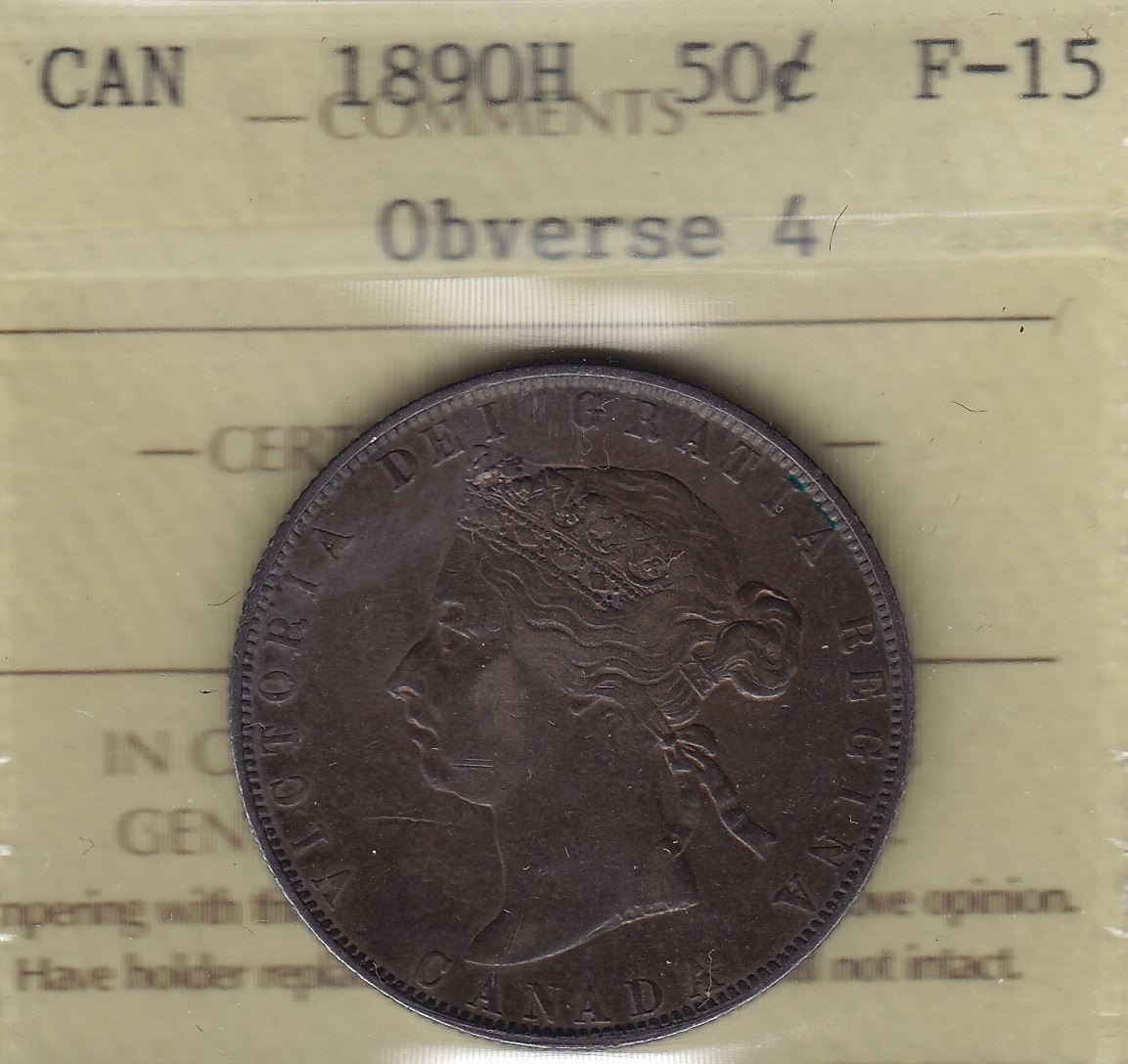 1890H Fifty Cent ICCS F-15, Obverse 4.