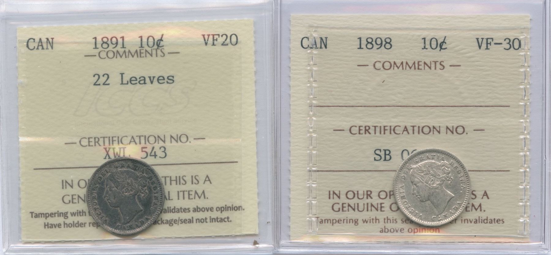 Includes: 1891 VF20, 22 leaves & 1898 VF-30. 2 pcs.