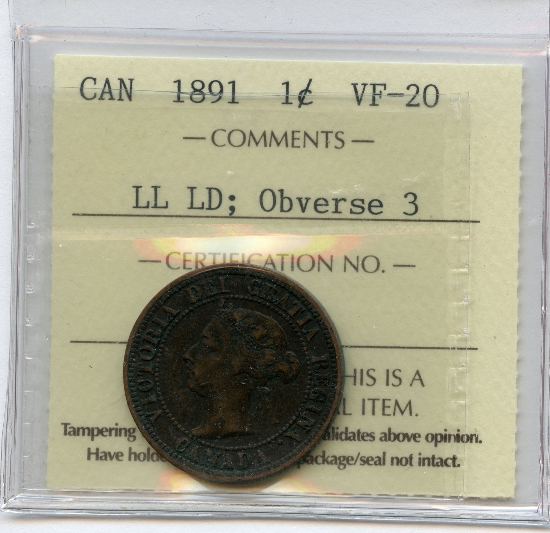ICCS VF-20. LL LD. Obverse 3.