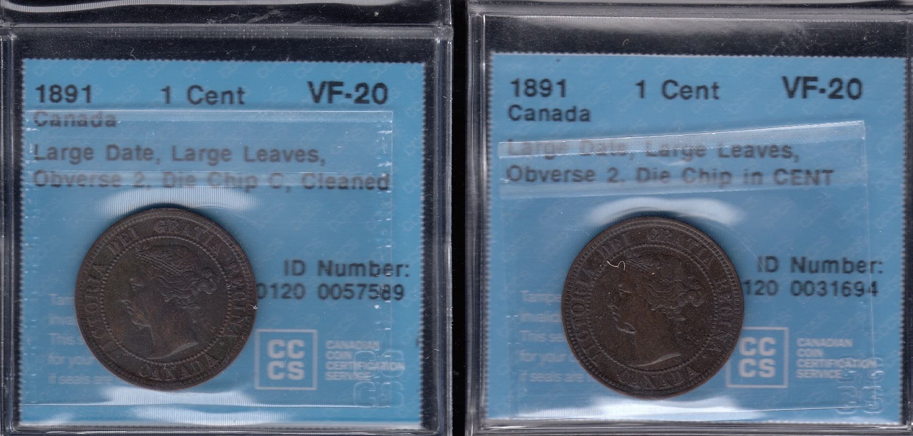 Both CCCS Graded VF-20. 2 types: LDLL Die Chip C CENT early and late stages.