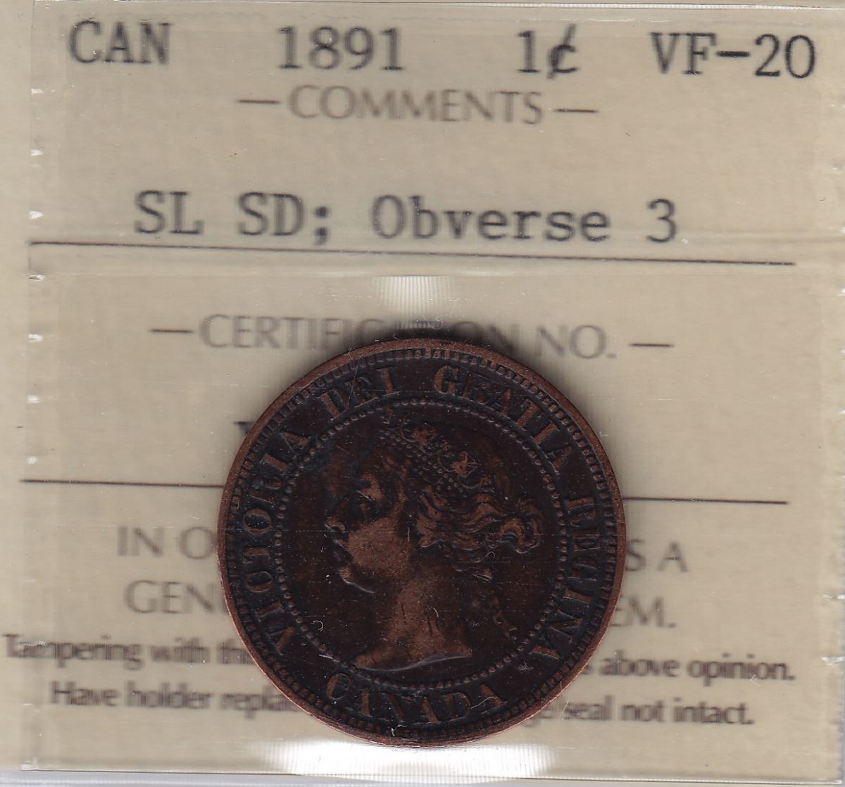 ICCS VF-20. SL SD, Obverse 3.