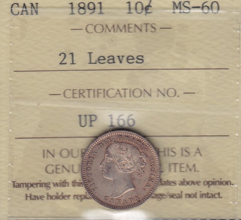 1891 Ten Cent - ICCS MS-60, 21 Leaves.