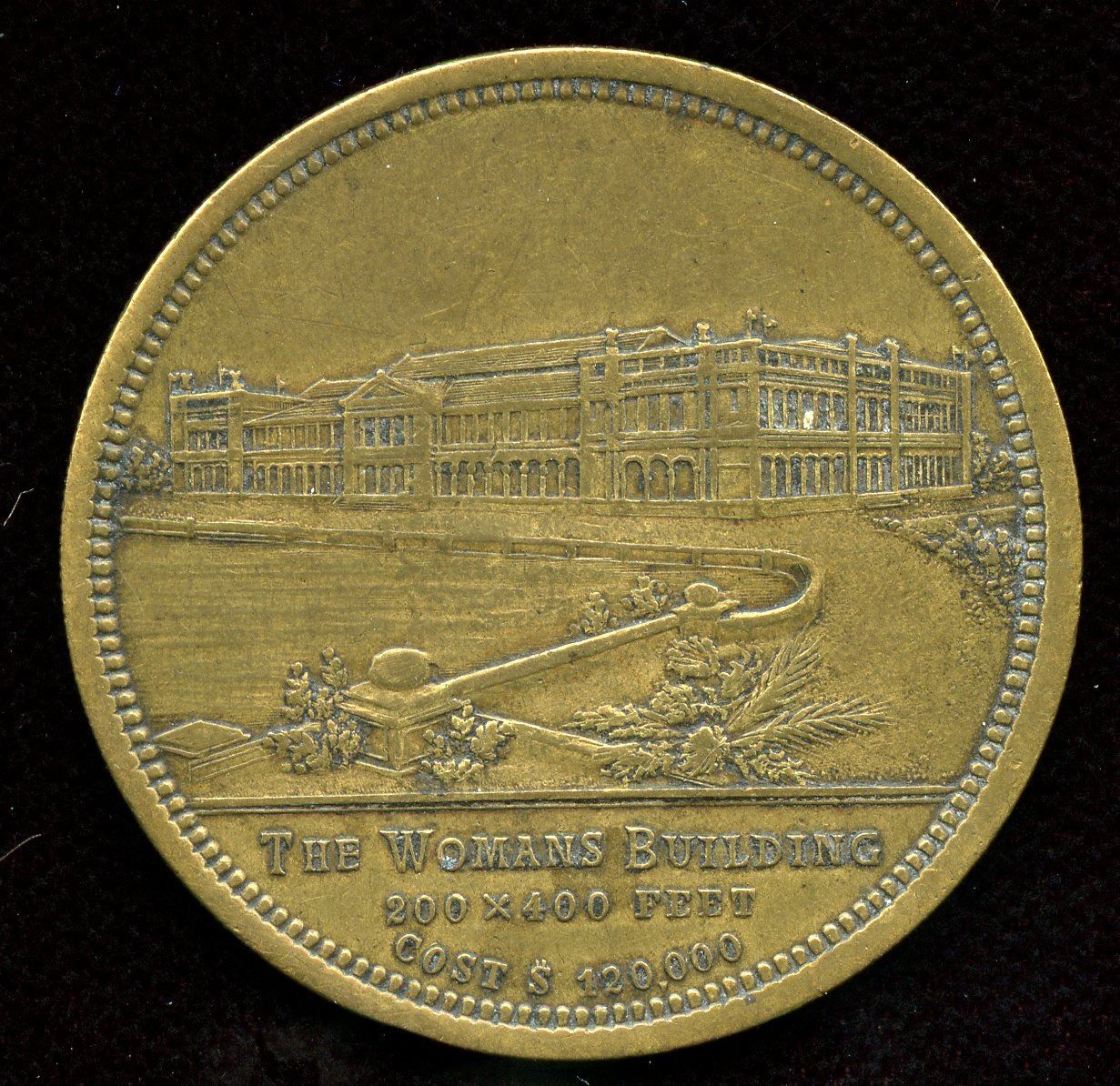 Rev. features the Woman's Building. Brass, 36mm, 12 gms.