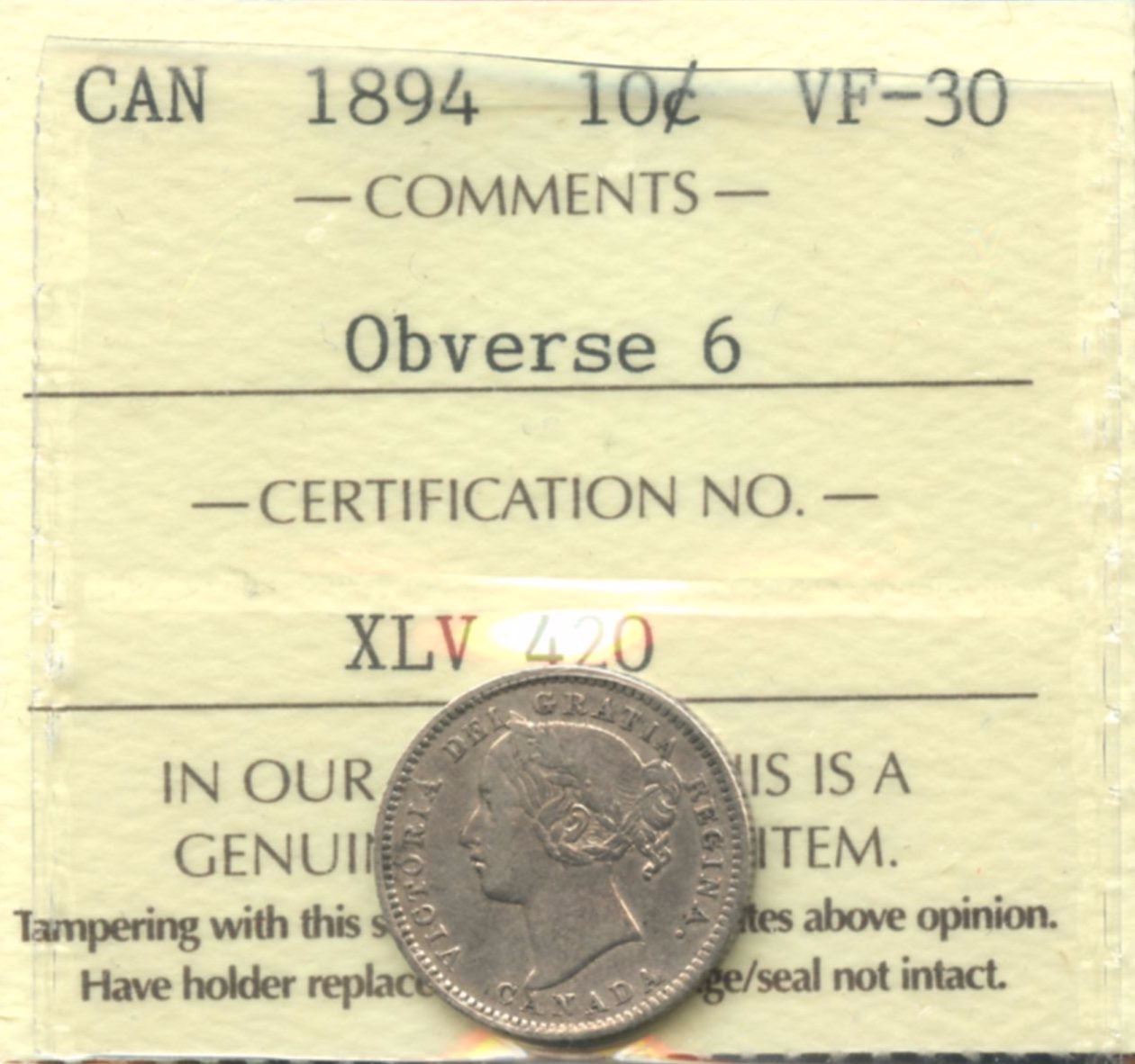 ICCS VF-30. Obverse 6.