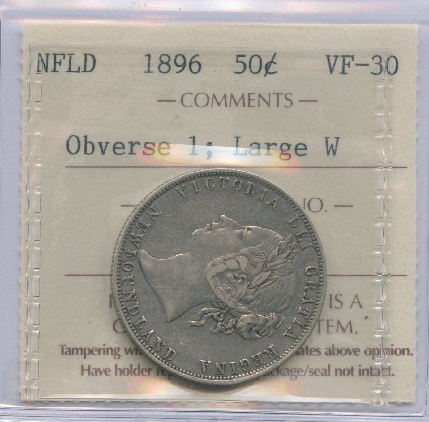 1896 Newfoundland Fifty Cents - ICCS VF-30. Obverse 1; Large W.