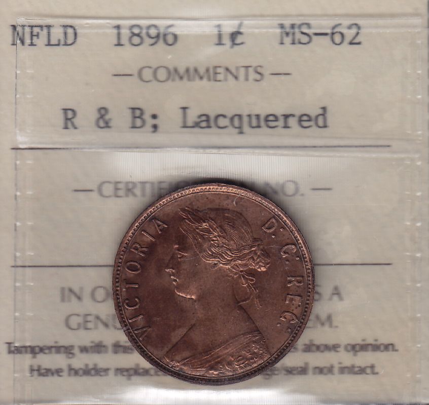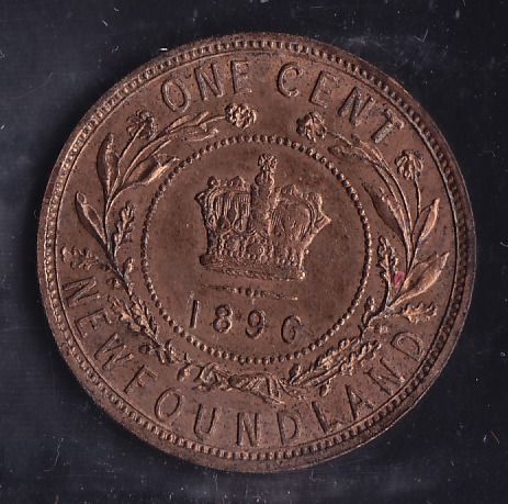 1896 Newfoundland One Cent - ICCS MS-62 Red and Brown, Lacquered.