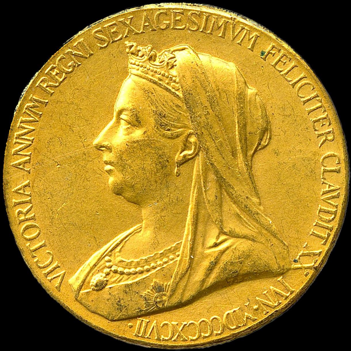 1897 Diamond Jubilee Of Queen Victoria. Gold. BHM 3506. Fine Gold. 26mm. 13.0g (0.418AGW). EF.