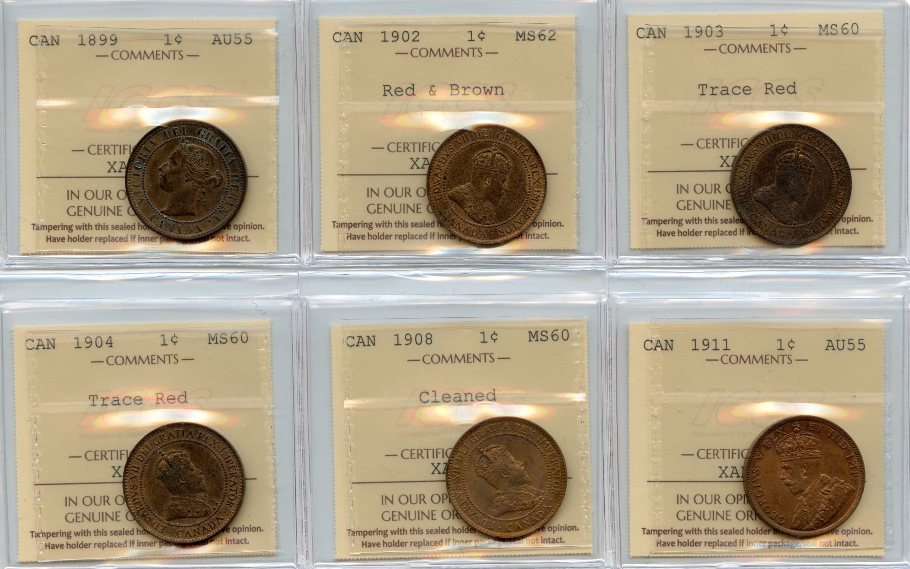 1899, 1902, 1903, 1904, 1908, 1911 - ICCS Graded Large Cents