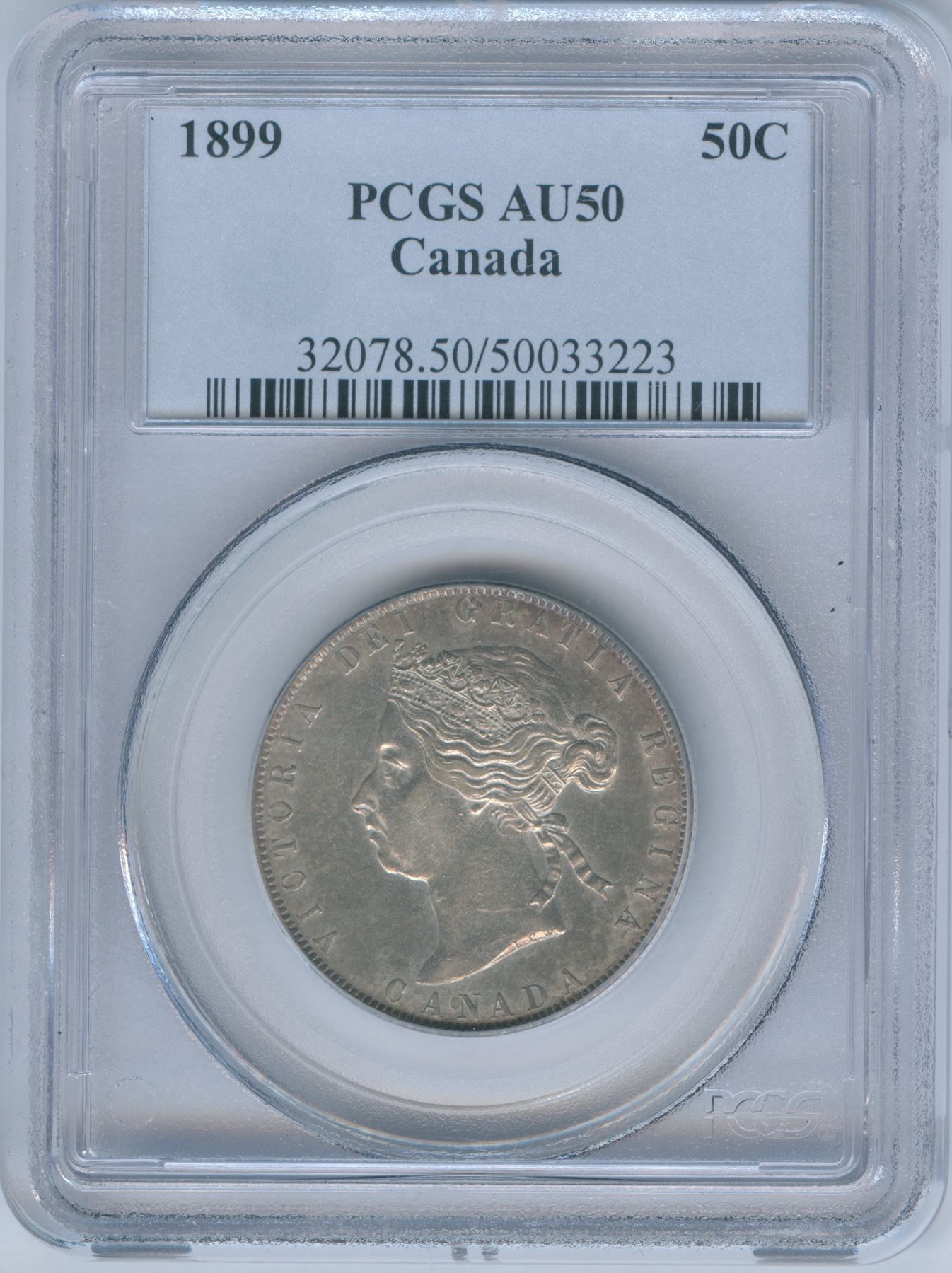 PCGS AU50. Light gray toning with original patina with very sharp details, rare date in this grade.