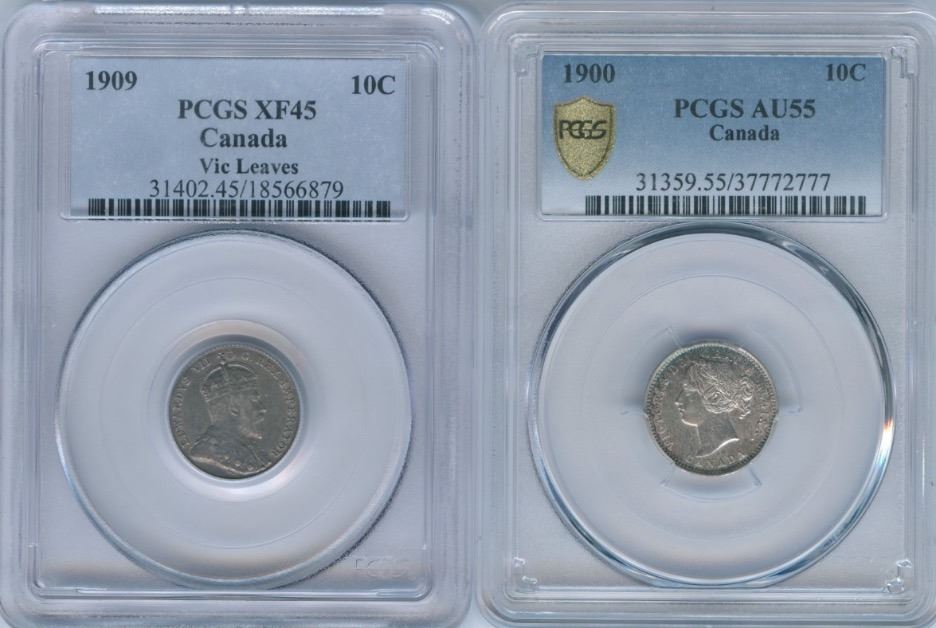 Includes: 1900 PCGS AU55 & 1909 PCGS XF45, Victorian Leaves. 2 pcs.