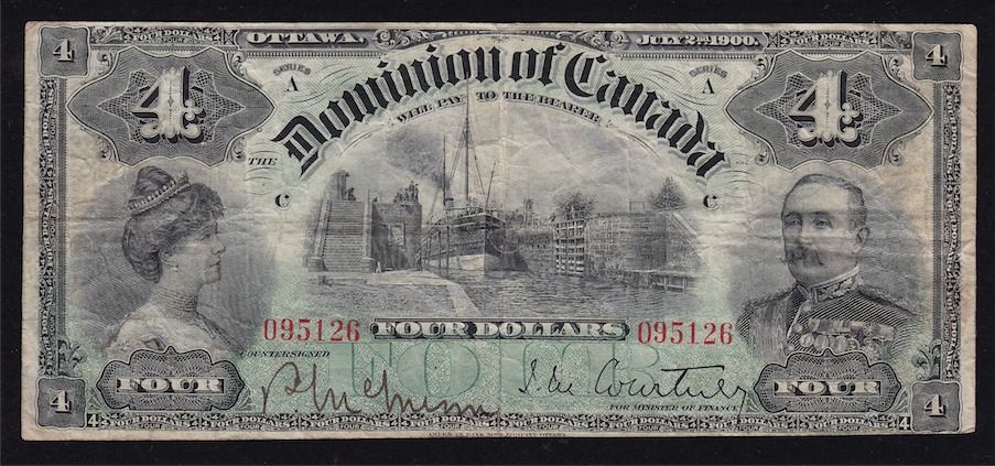 1900 Dominion of Canada $4. DC-16 VF. S/N:095126/A.
