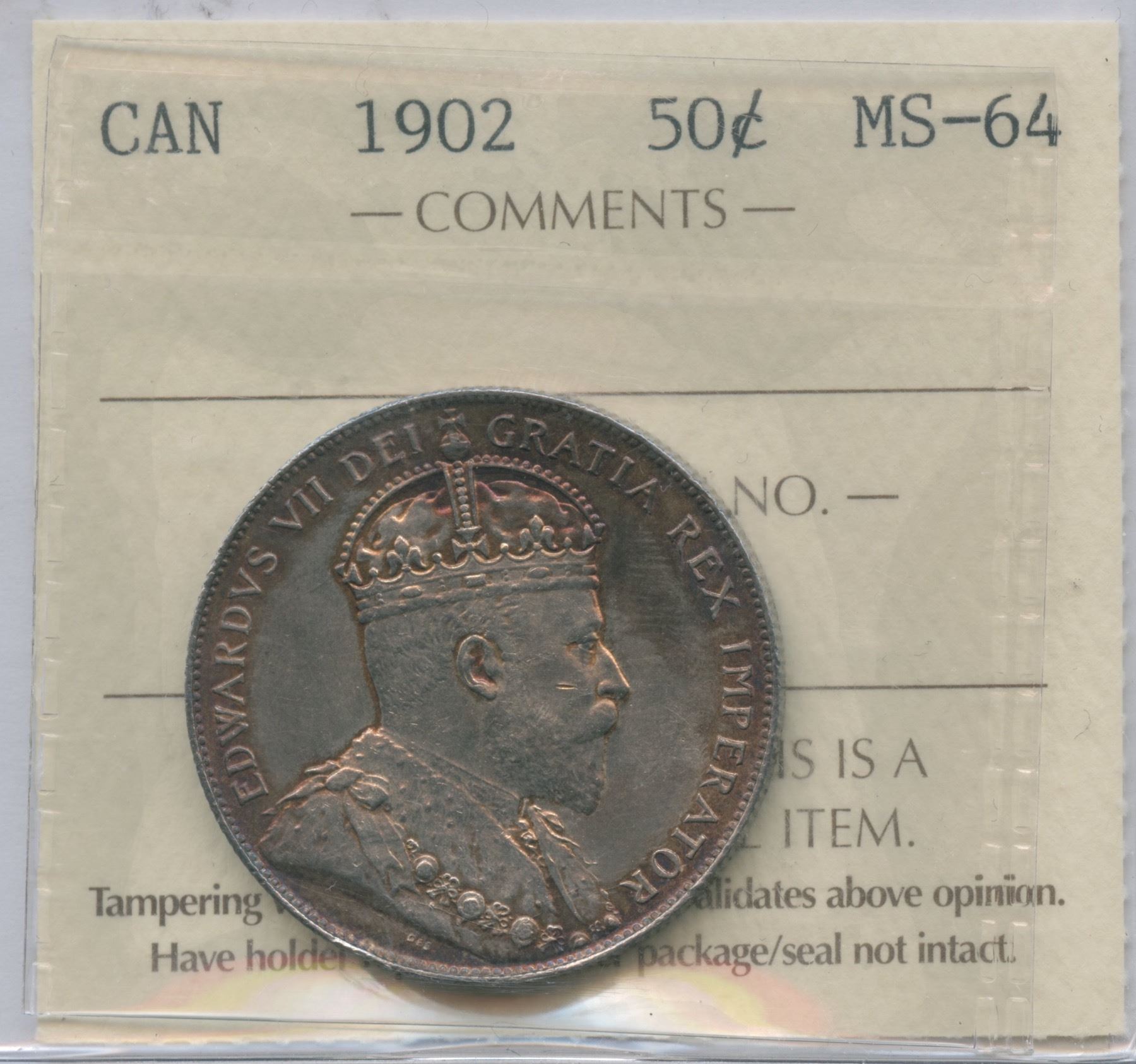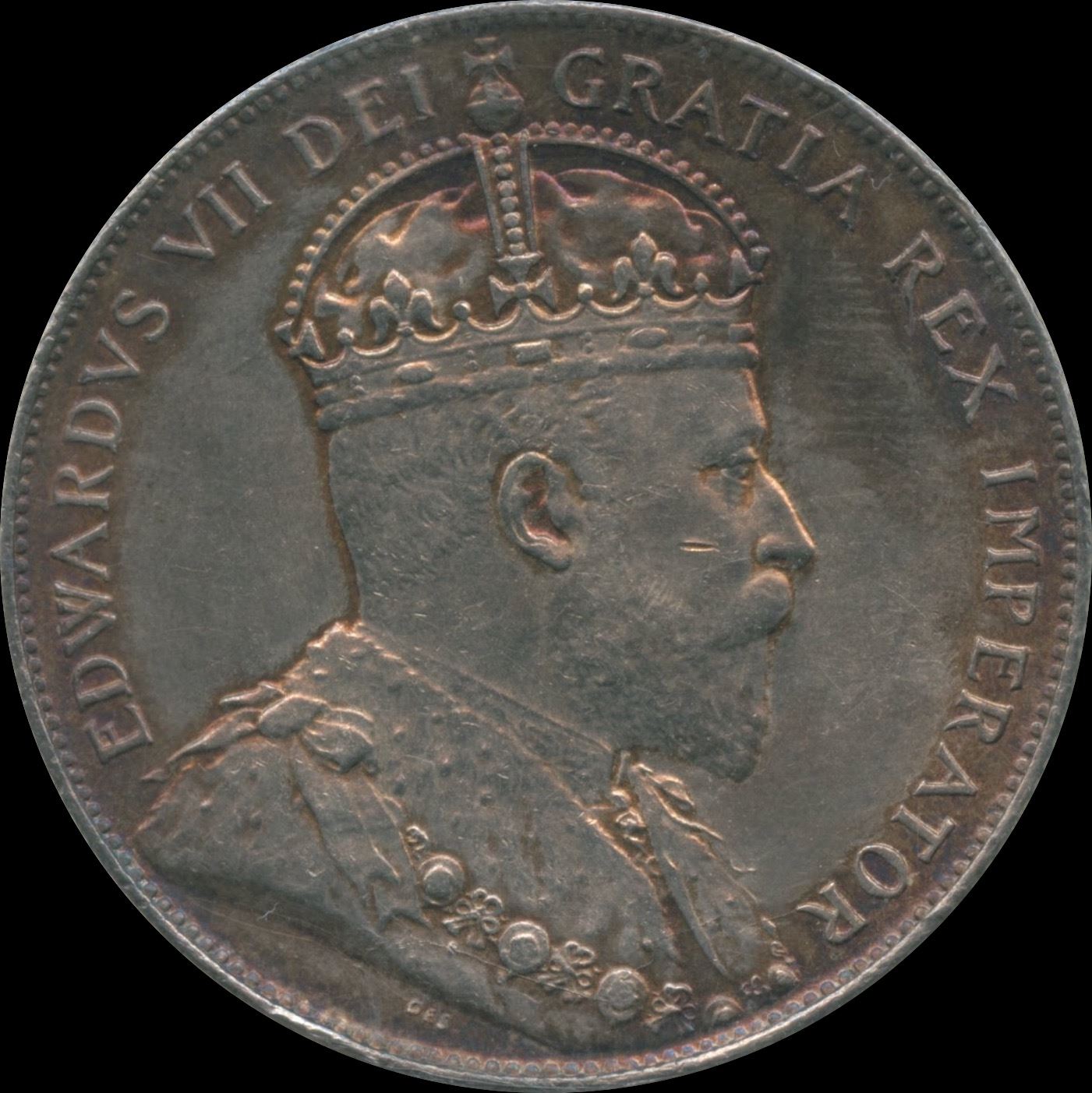ICCS MS-64. The first year of Edward VII's coinage, gem representatives such as this few and far between. This piece exhibits a strong portrait of the new King, original luster with toning to a satiny slate-gray.