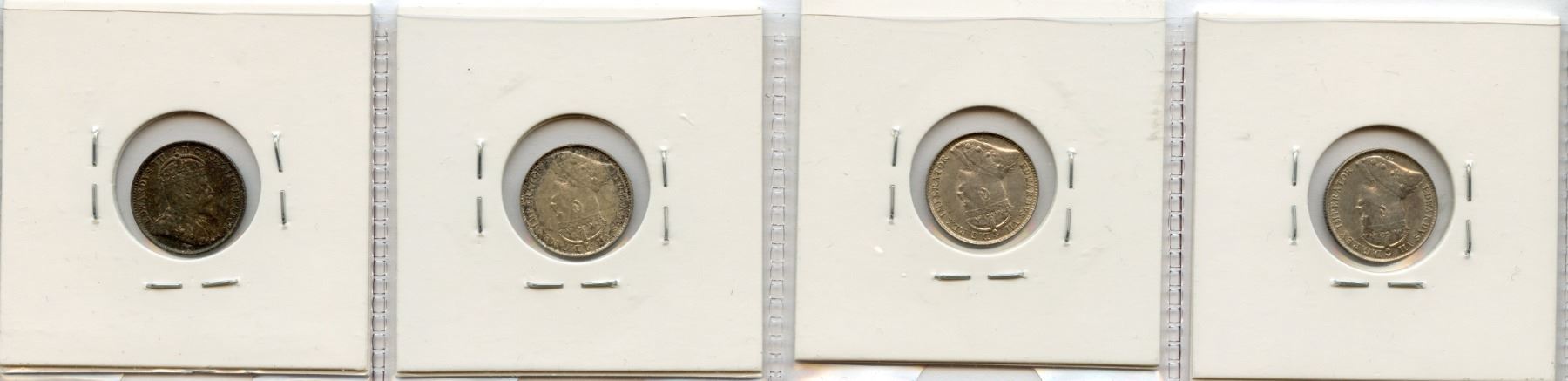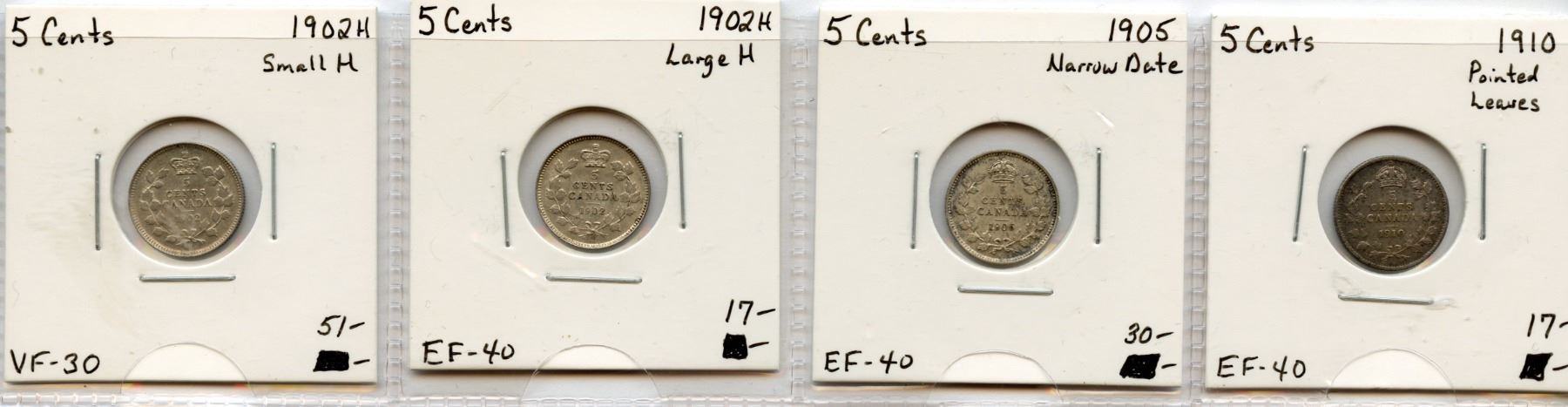 1902H Small H, VF-30 || 1902H Large H, EF-40 || 1905 Narrow Date, EF-40 || 1910 Pointed Leaves, EF-40. 4 Pcs.