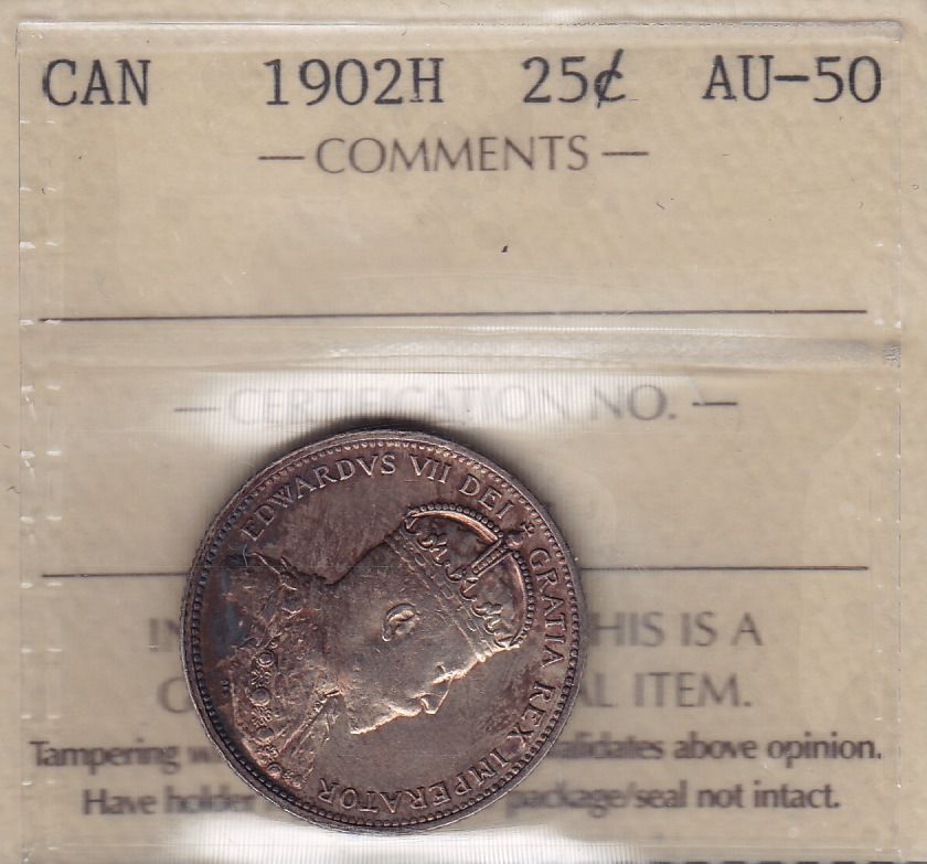 1902H Twenty Five Cent - ICCS AU-50.