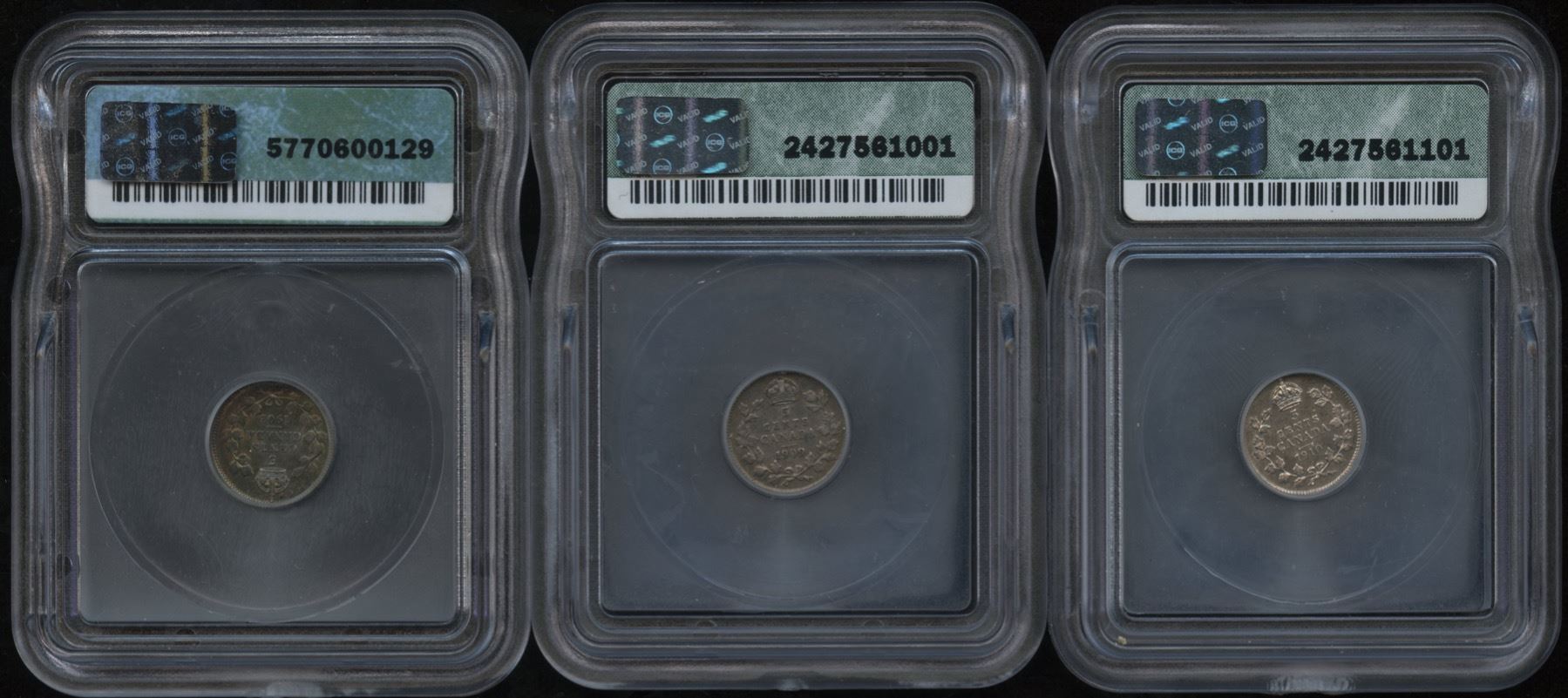 Includes: 1903H AU58, Large H, serifs apart. 1909 VF25, Pointed Leaves. 1910 VF35, Round Leaves. 3 Pcs.