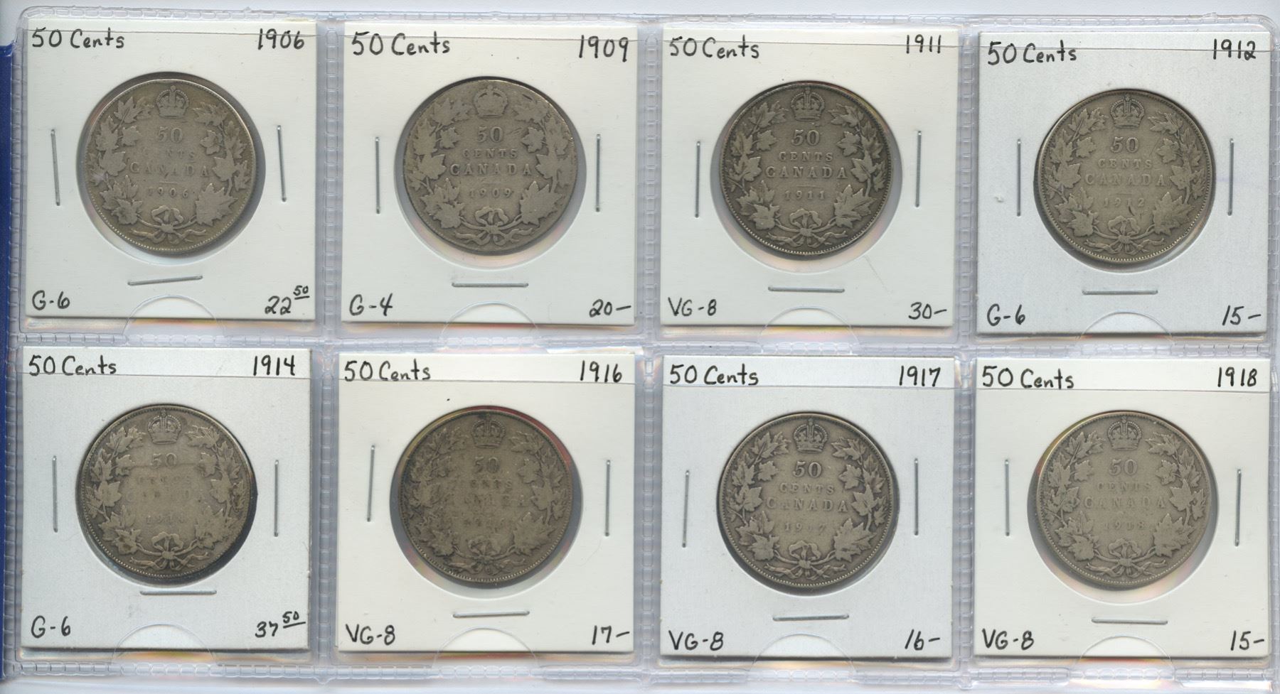 1906 - 1918 Fifty Cents Group - Lot of 8