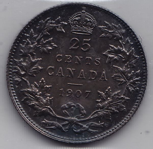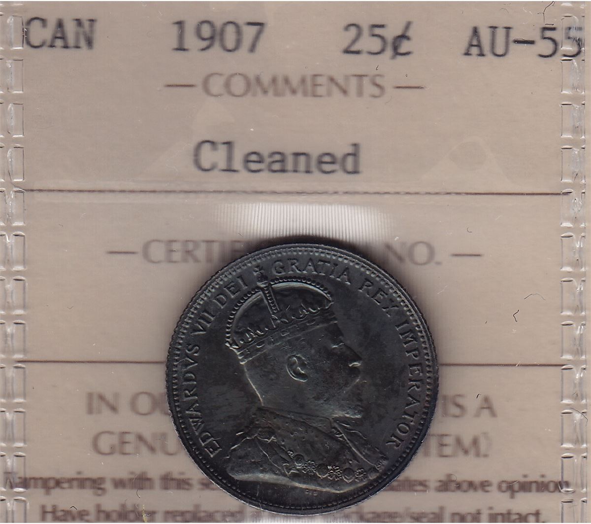 1907 Twenty Five Cent ICCS AU-55, Cleaned.