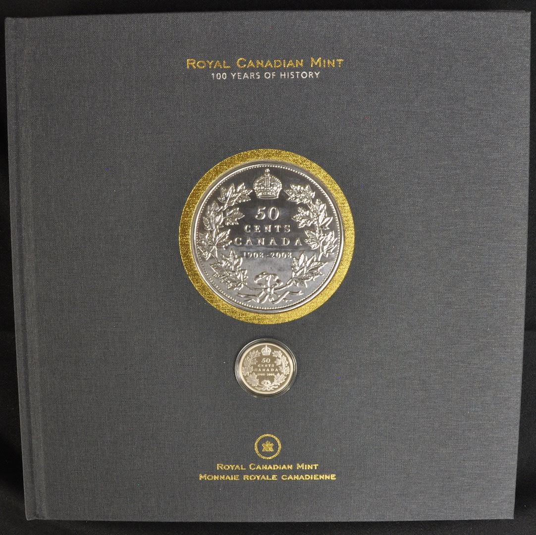 1908 - 2008 Royal Canadian Mint 100 Years of History - Includes coffee table book and silver commemorative half dollar, with slipcase, pristine.