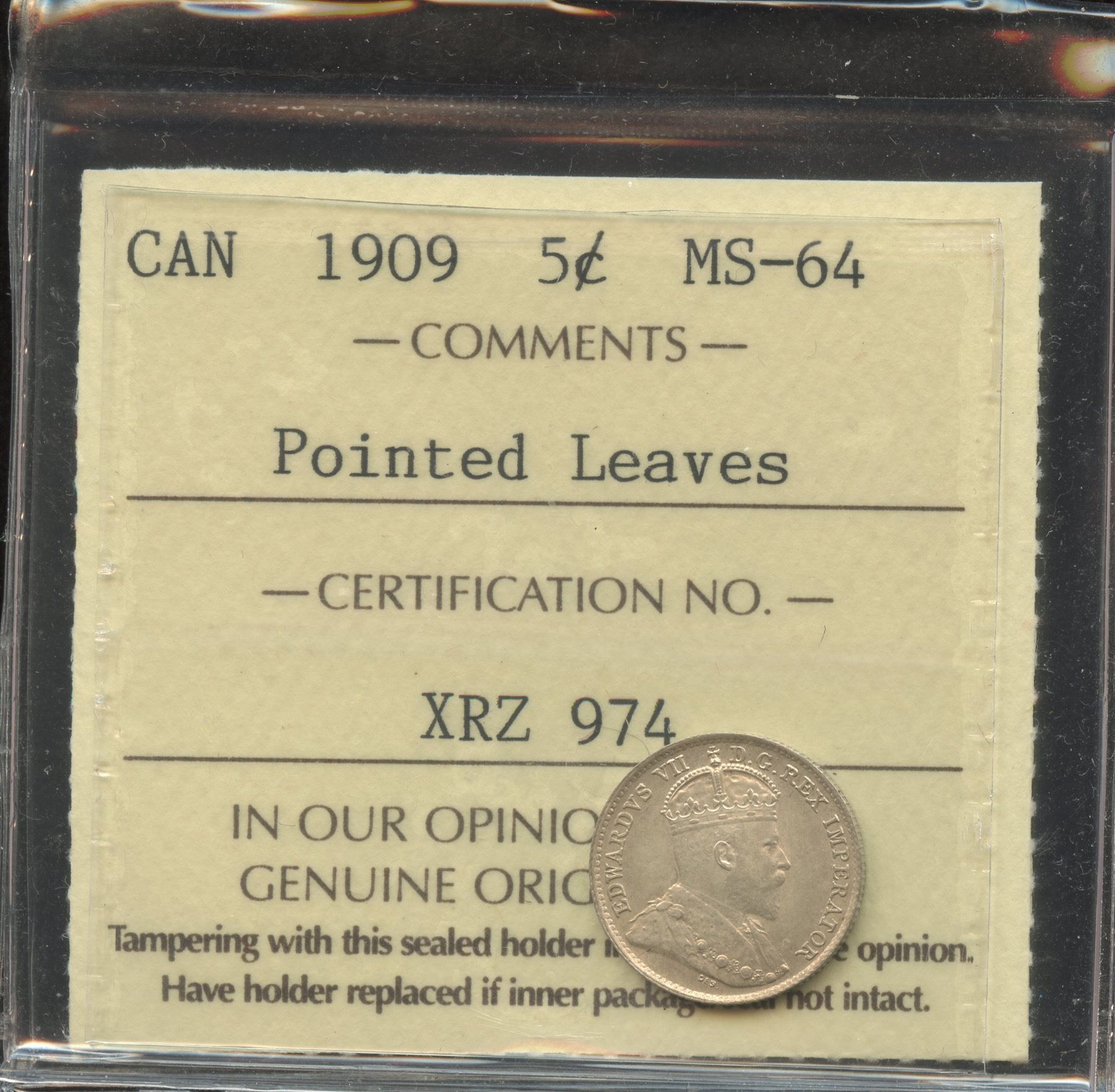 Pointed Leaves, graded by ICCS Mintstate-64. A near Gem example of this scarce variety, with light toning.