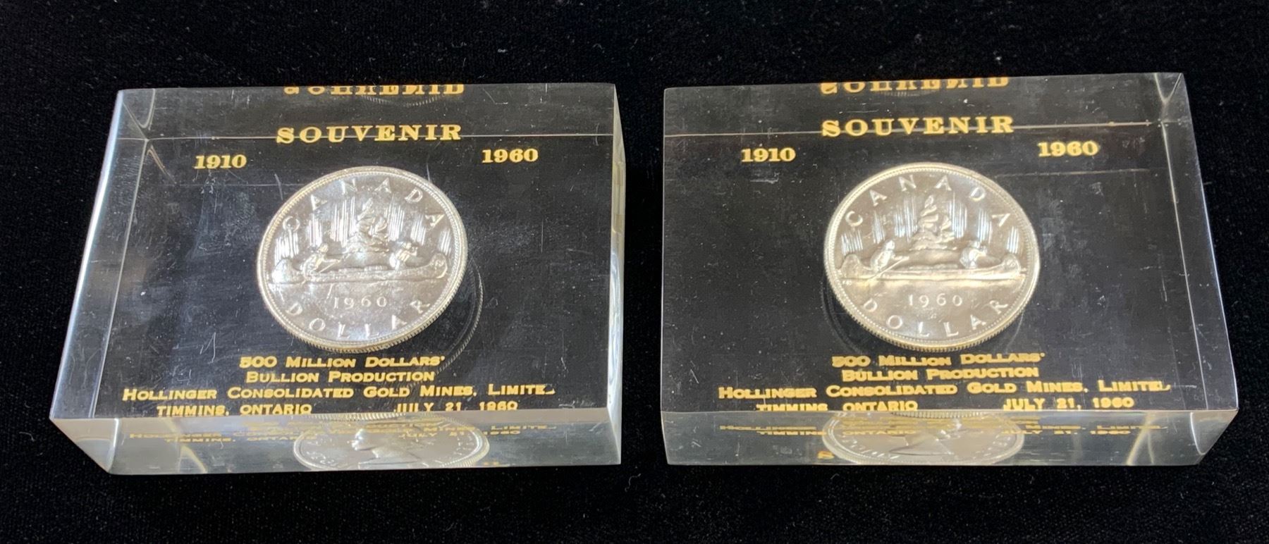 Commemorating 500 Million Dollars of Bullion Production at Consolidated Gold Mines, Timmins, Ontario. 2 Pcs.