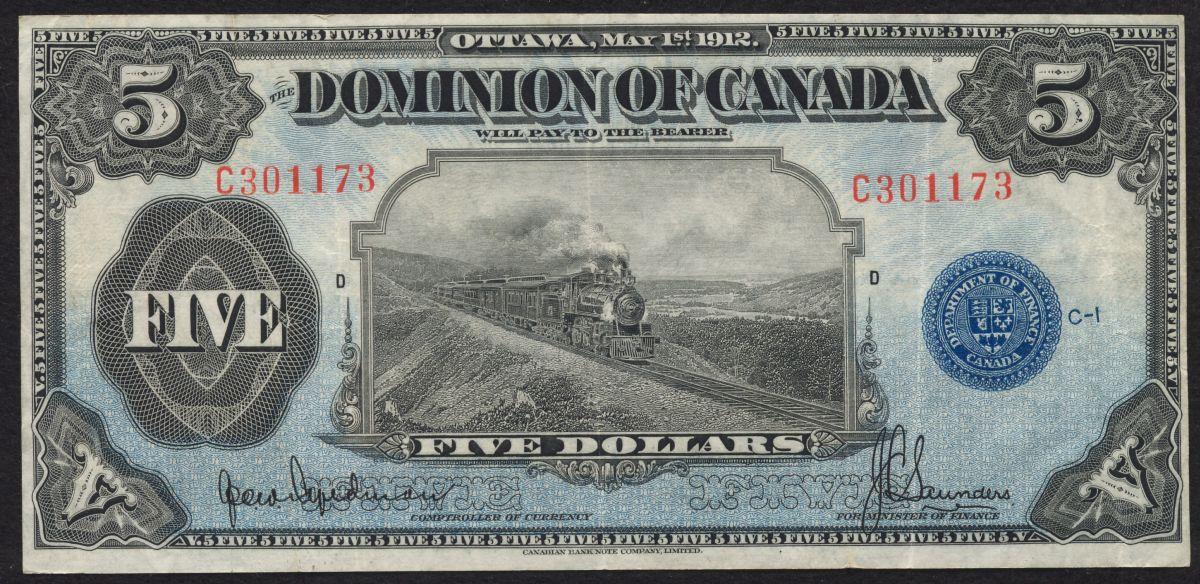 CH DC-21g, VF Condition. S/N: C301173 Another Gorgeous intercolonial railway train note.*
