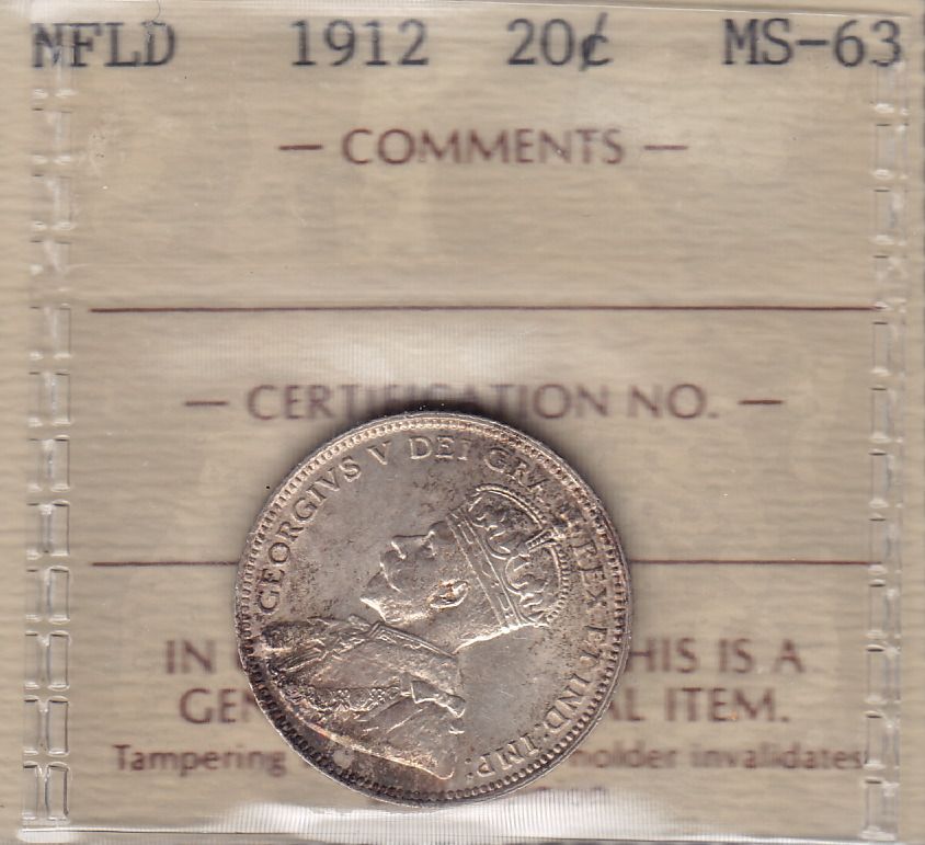 1912 Newfoundland Twenty Cent - ICCS MS-63.