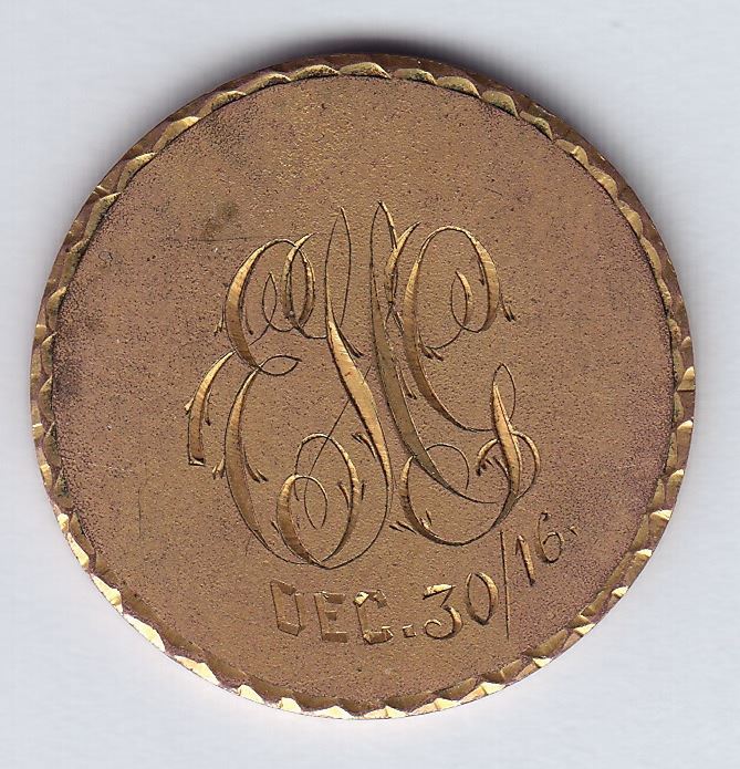Plated in gold, exceptionally well done. Engraved EC / Dec. 30 / 16.
