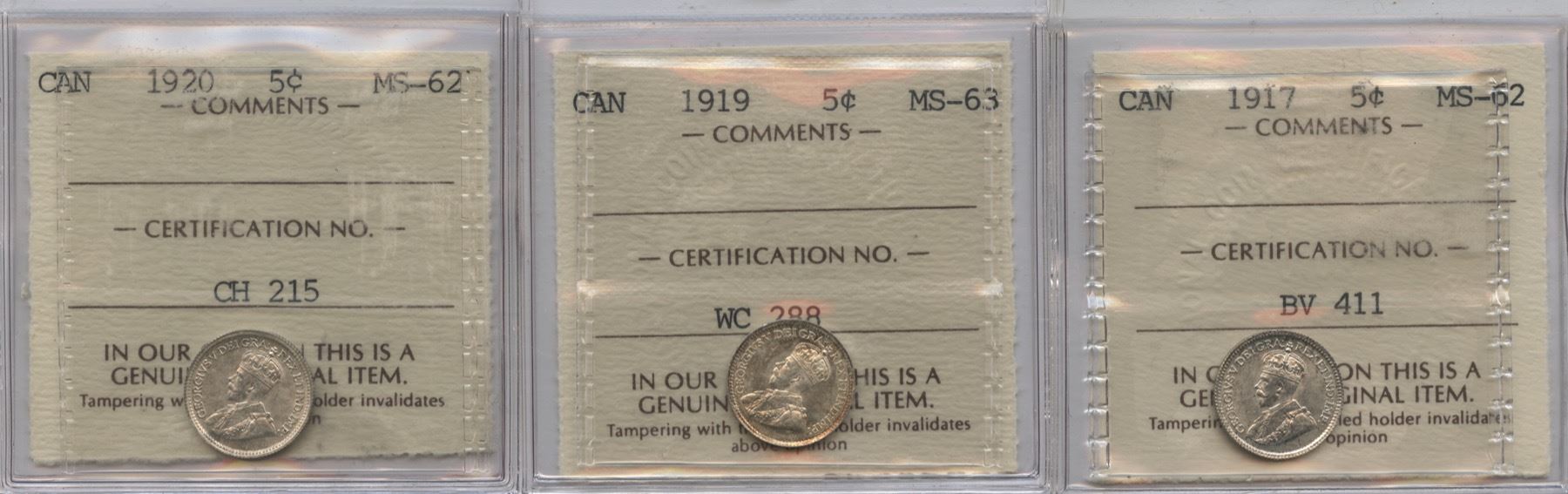 ICCS MS-62 & MS-63. Please inspect, these are older certificates. 3 pcs.