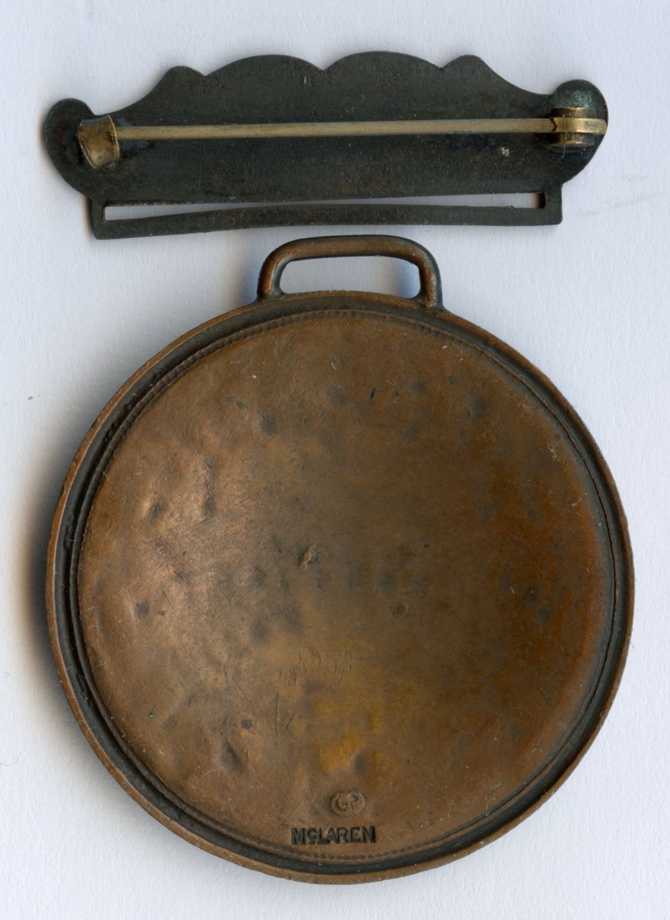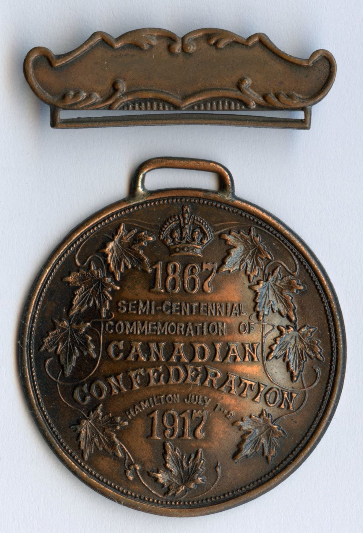 July 1, Hamilton, Ontario. Copper. Signed McLaren. Beautiful with original hanger and detached clasp. Due to World War I, there were not many medals produced, by either the public or private sectors. To commemorate Canada's 50th Anniversary. Seldomly seen!