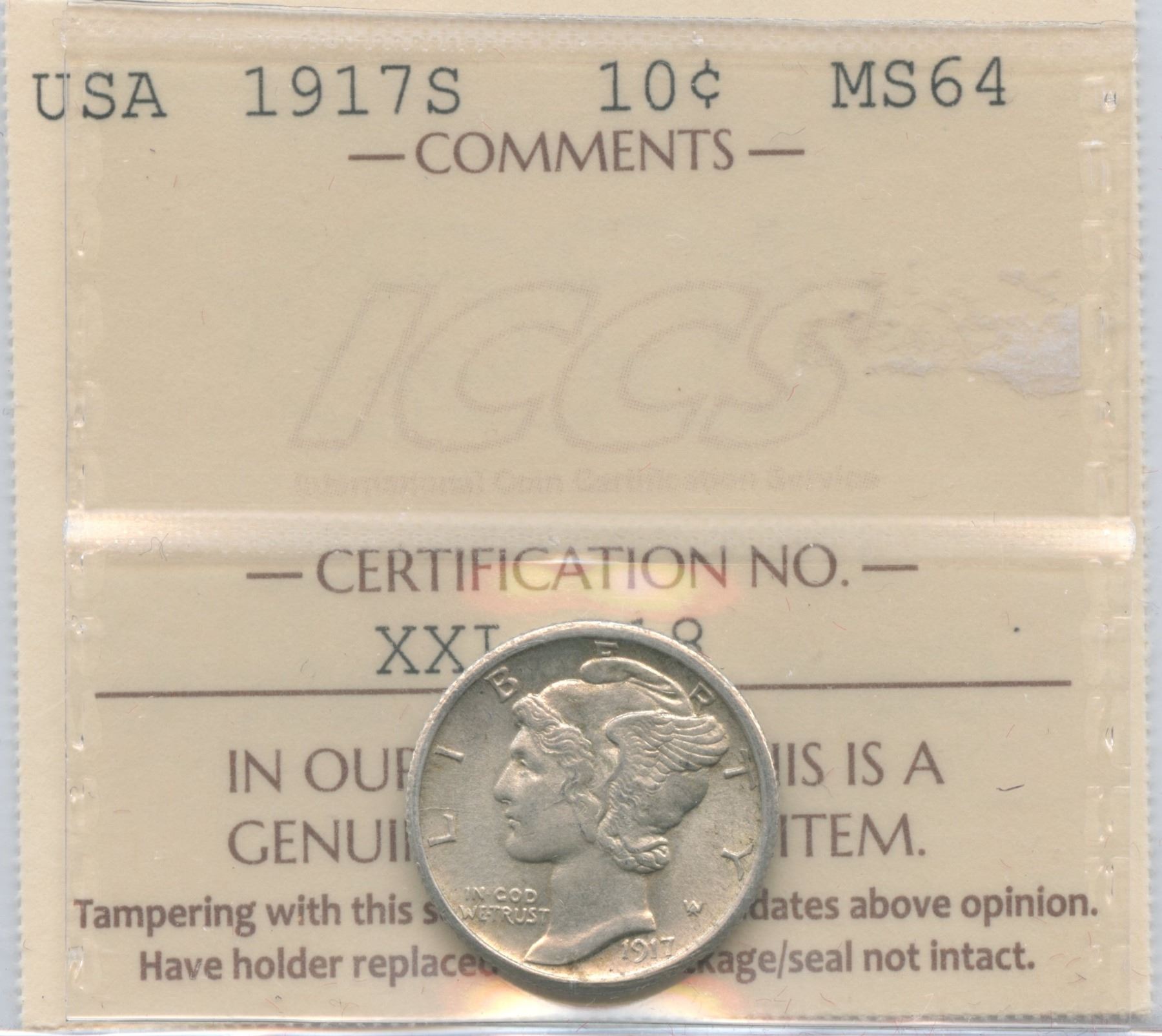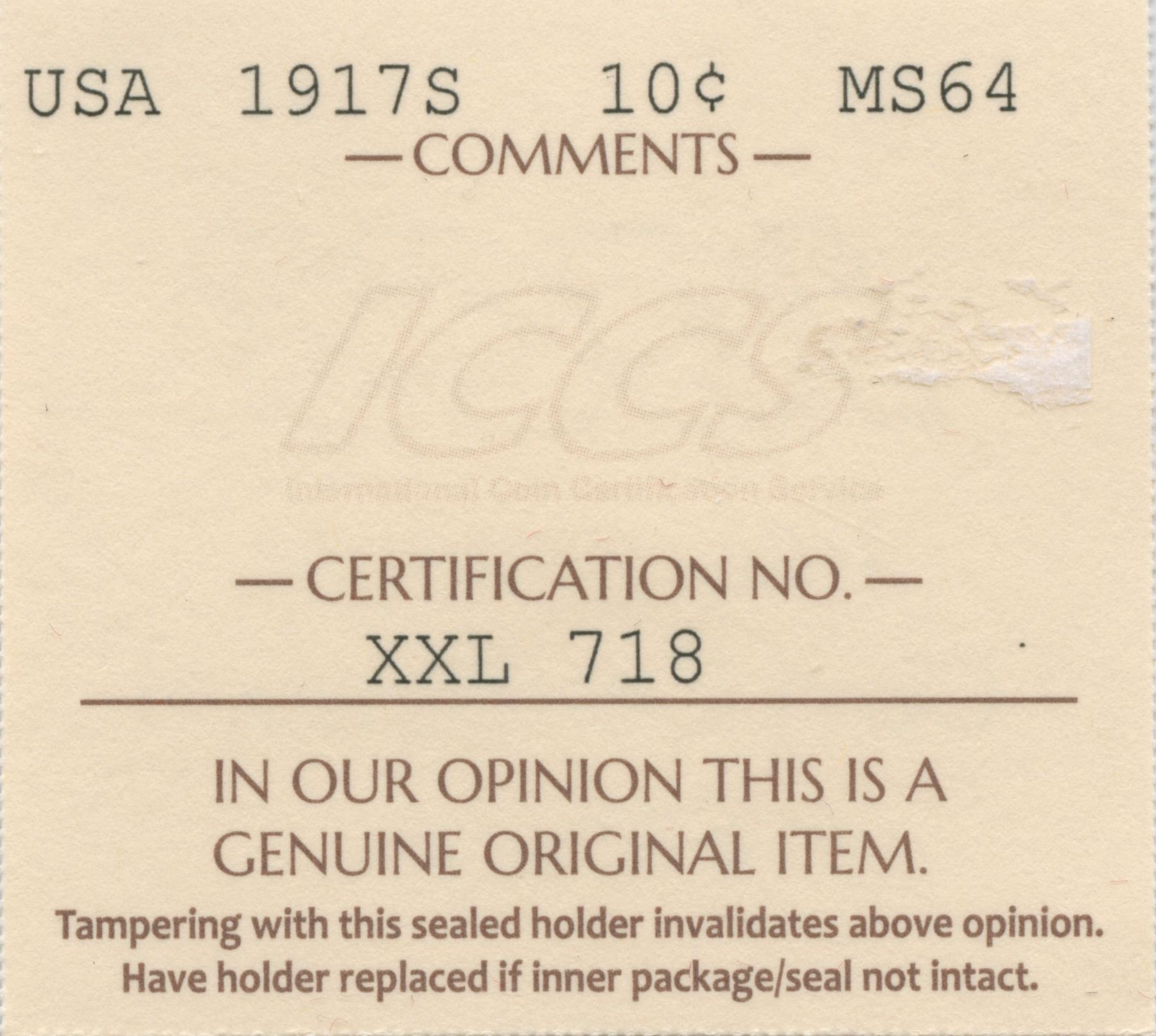 1917s USA Ten Cents