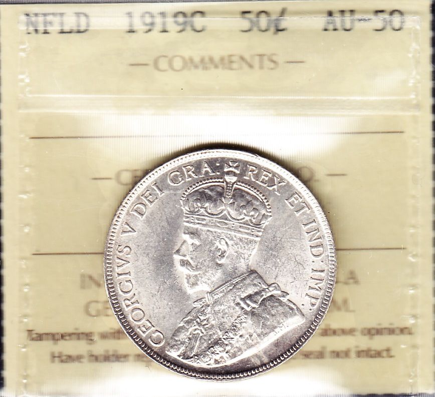 1919C Newfoundland Fifty Cent - ICCS AU-50.